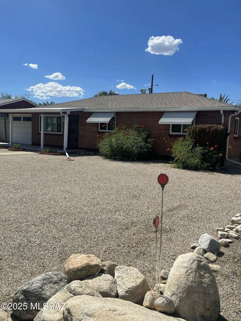 3 bedrooms, 1.5 baths, 1 car garage with additional storage area. Ceiling fans in all rooms, covered back patio.Nice central located cute home. Large size of lot front and backyard, very low maintenance home. Large size cooling in Arizona Room. No HOA.