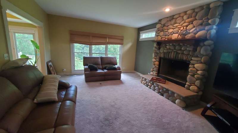This 2.75-acre wooded property offers ultimate seclusion and tranquility, enhanced by mature fruit trees and a dedicated chicken hutch, inviting a harmonious connection with nature. The heart of the home is the expansive kitchen, complete with a large island, stainless steel appliances, abundant cabinetry, and a walk-in pantry, all framed by stunning wilderness views. Relax by the stone fireplace in the welcoming family room. The primary suite boasts an oversized ensuite with a jetted tub, plus an attached flexible space ideal for a nursery, office, or dressing room. Three additional bedrooms on the upper level feature newer carpet and share a spacious hall bath with a double vanity, alongside a convenient second-floor laundry room. Practical amenities include a large mudroom with a dog shower and a spacious deck, perfect for enjoying the outdoors. The finished basement, while needing new carpet, provides exciting potential for further customization. Located in an exceptional area with top-rated schools and proximity to everything the Fox River Valley has to offer, this property presents an extraordinary chance to create your perfect escape.
