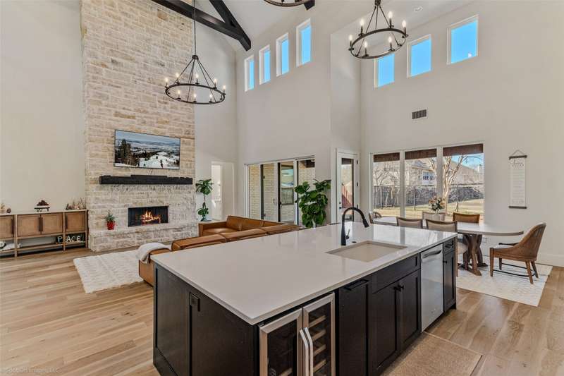 Looking for a newly built custom home by an award-winning builder in the sought after Buffalo Creek Tennis Village? This is the modern home you have been waiting for. Enter through a stunning all-glass front door into a foyer with an office to the left and a living room with soaring 30-ft ceilings and custom wood beams. A open plan design for modern living. A dramatic stone fireplace, dual wood + gas burning, adds charm. The gourmet kitchen features custom cabinetry, an oversized island with a built-in wine fridge and elegant finishes. The owners suite boasts a spa-like bath and walk-in closet. Two additional bedrooms and a full bath complete the first floor. Upstairs, a game room and an additional oversized ensuite bedroom awaits. Custom sliding doors open to the spacious covered patio and low-maintenance landscaping for added convenience. This community offers exceptional amenities for the family to enjoy, including golf, clubhouse, tennis and pickle ball courts, playground and pools, providing endless recreational options. Zoned for the desirable Rockwall ISD with the elementary and middle school located within walking distance. Schedule your showing today!