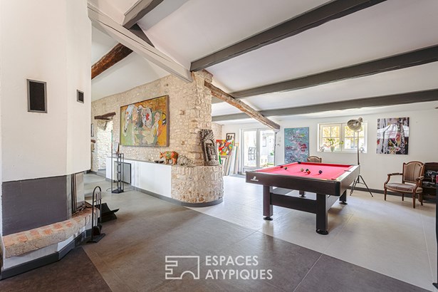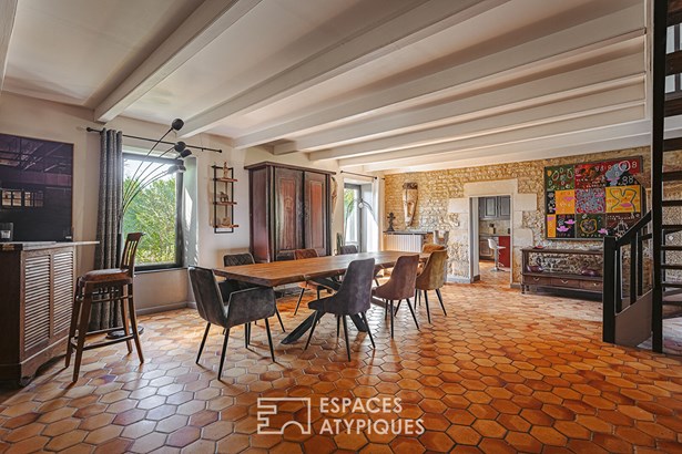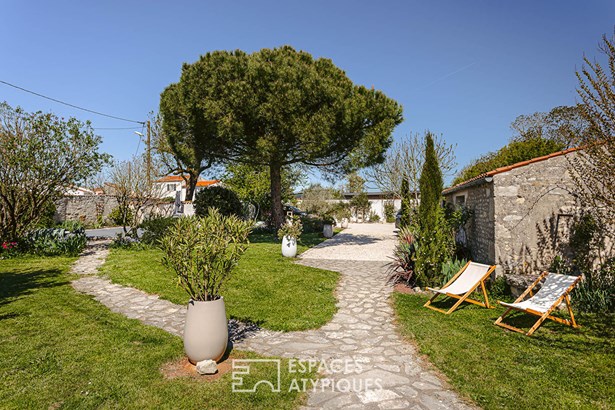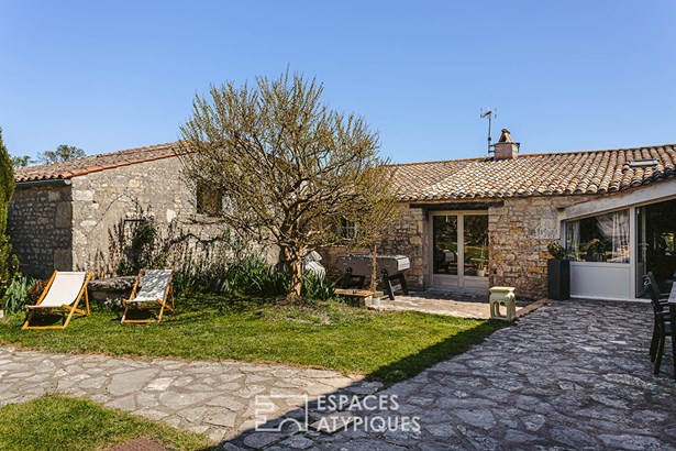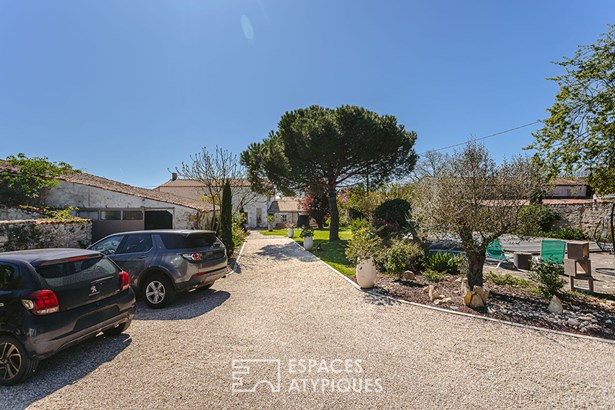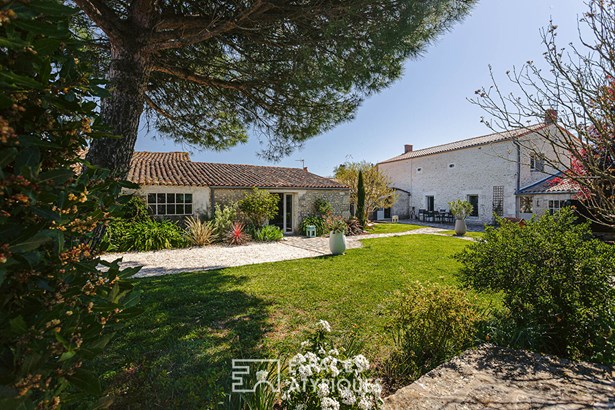 EXCLUSIVE ATYPICAL SPACES Nestled in the calm of a charming hamlet in Saint-Medard-d'Aunis, a commune in the CDA located just a few kilometers from La Rochelle, this stone house, with its distinctive style, offers approximately 330 sqm of living space on a landscaped plot of over 1,400 sqm. The tone is set upon arrival: a majestic driveway lined with vegetation, a discreet electric gate, and several parking spaces. The setting invites relaxation and disconnection. In the background, an authentic building, whose volumes are as impressive as they are seductive. The ground floor, designed for fluid and comfortable single-story living, opens onto a spacious entrance hall that leads opposite to a masterful 85 sqm living room, the true beating heart of the house. In its extension, a master suite combines elegance and intimacy, with its refined bathroom and dressing room. To the right of the entrance, the reception areas continue with a generously proportioned dining room, perfect for long, convivial meals, followed by a cozy kitchen, a functional laundry room, and an additional bedroom with a private shower room, ideal for hosting. The upper floor, bathed in light thanks to its south-facing exposure, offers three bedrooms, a separate toilet, and a family bathroom, perfectly balancing the sleeping areas. Outside, the swimming pool blends harmoniously into the enclosed, planted garden, a true haven of peace. A separate office, which can easily be used as a bedroom or a teleworking space, as well as outbuildings complete the features of this rare house. Combining rural authenticity with contemporary volumes, this unique place will appeal to lovers of atypical lines, green living, and proximity to La Rochelle, located just a few minutes away. ENERGY: D / CLIMATE CLASS: C. Estimated average annual energy expenditure for standard use, based on energy prices for 2021, 2022, 2023: between EUR4,750 and EUR6,530.