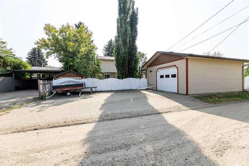 Welcome home to this gorgeous 2-storey in the heart of Lacombe! Main floor has been beautifully updated! Featuring 4 bedrooms, ONE 4 piece bath & a 2 piece ensuite on the upper level plus a 2 piece bath on the main. The functional and stylish kitchen is as practical as it is beautiful, with matching whirlpool appliances that includes a gas stove. There is an air tight wood-burning fireplace in the spacious living room to cozy up to and read your favourite book while enjoying the sunshine streaming through the big picture window. Your plants will love the natural light streaming in as well! Enjoy the bonus of an attached 21.5 X 13 garage and a detached 20 X 24 garage with 11'6 X 17'6 workshop/craft room (or extra guest space!)c/w radiant heat. Nestled on a mature 125 x 66 lot with trees that attract songbirds year-round, much time and effort has been put into making the backyard an oasis and a place to create memories with the family year round. This family-oriented location is just steps from downtown, hospital, schools ( Lacombe Christian Schools), arena, library, and playgrounds. A must-see property with solid bones, wonderful updates, and neighbours you’ll love! This lovingly cared for home will be a perfect place for your family to call HOME SWEET HOME!