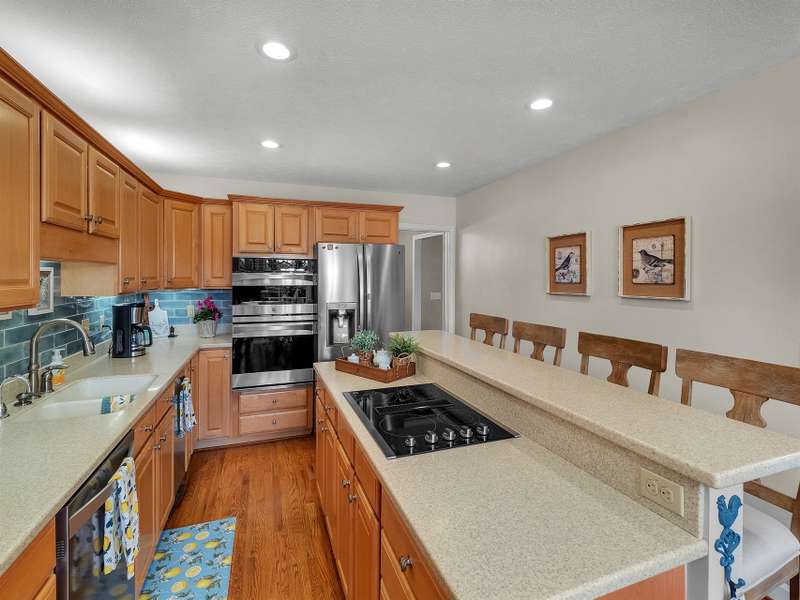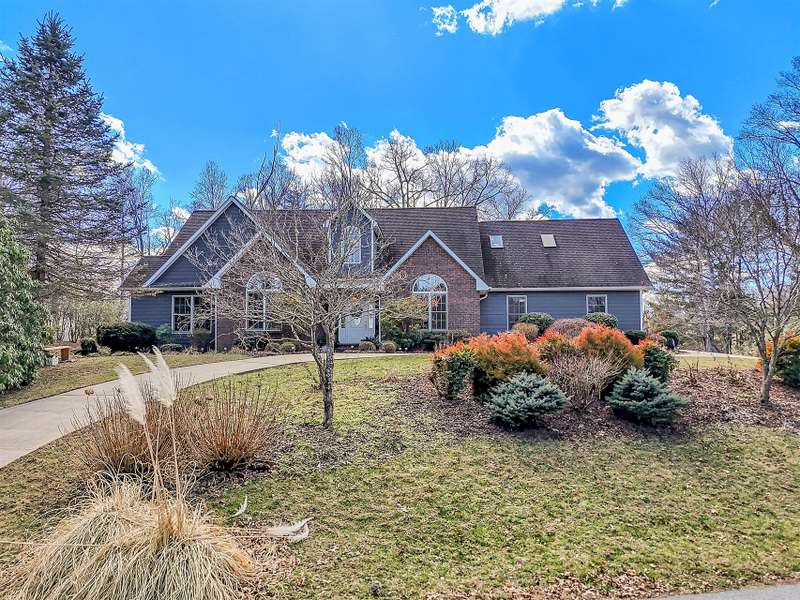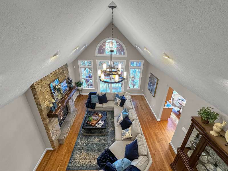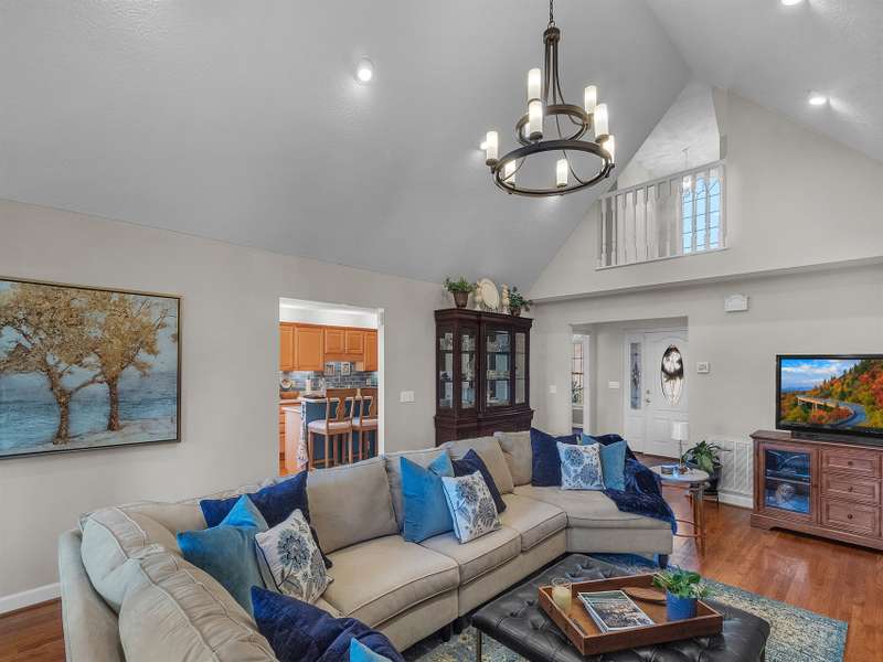Welcome to this elegant, custom-built home nestled in a gated community. The spacious living room features soaring cathedral ceilings and a stunning stone fireplace, creating a warm and inviting atmosphere. The eat-in kitchen offers a perfect space for casual dining, while the separate dining room is ideal for more formal occasions. The large primary suite is a true retreat, tucked away on the opposite side of the house from the other 3 bedrooms for privacy. This home offers plenty of space for family and guests, upstairs you'll find a large bonus room that could serve as additional sleeping quarters, a home gym, and a private office?perfect for whatever your lifestyle demands. Step outside to your own private oasis, featuring a beautiful covered porch with a tranquil waterfall flowing into a koi pond. Enjoy the outdoors on the large open deck, complete with a swim spa for year-round relaxation. The home also features a horseshoe driveway and is conveniently located near shopping.