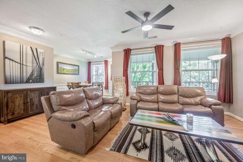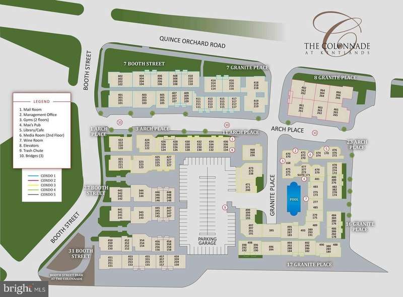 Welcome to The Colonnade at Kentlands! This amenity-rich building offers a lifestyle of convenience and comfort, featuring a two-level fitness center, outdoor swimming pool, Max's Pub with billiards and party space, a private theatre room, and a resident library. ""The Hawthorne""Â? floor plan includes 3 spacious bedrooms and 2 full bathrooms, starting with a welcoming foyer. The gourmet kitchen boasts stainless steel appliances and opens to the dining and family rooms, both with beautiful hardwood floors. The bedrooms are carpeted for comfort, while the kitchen and foyer are tiled. Each bedroom offers generous closet space, and the bathrooms feature double vanities for added convenience. This unit also includes an in-unit washer and dryer and comes with two assigned parking spaces (#PU 451 and #105). The building offers plenty of additional guest parking or space for a third car at no extra cost on the lower garage level. The unit is in impeccable condition-move-in ready and truly a must-see!