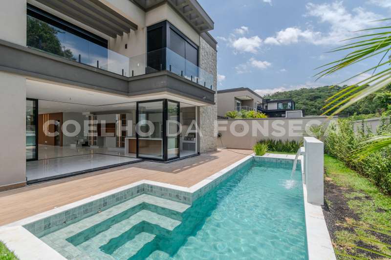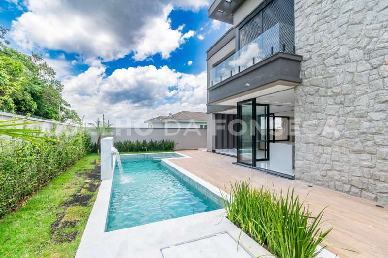 Casa maravilhosa nova, em ótima alameda, fundo para mata com 4 suites sendo uma com closet, banheiro sr e sra. Living com pé direito duplo,lavabo, escritório, sala íntima, sala de lareira, sala de jantar, gourmet integrado lazer, piscina com hidro, aquecimento solar da Helioteck, esquadrias em alumínio JMAR,