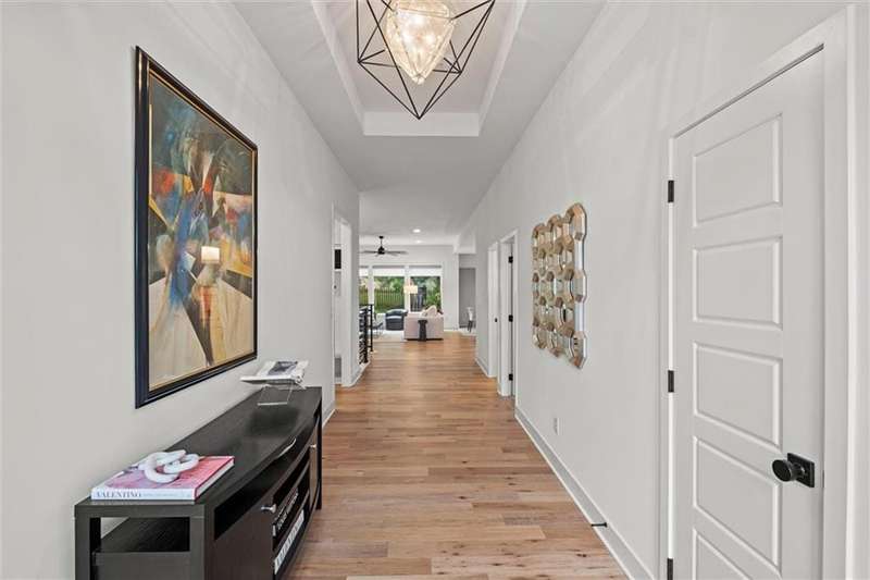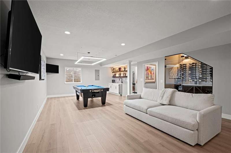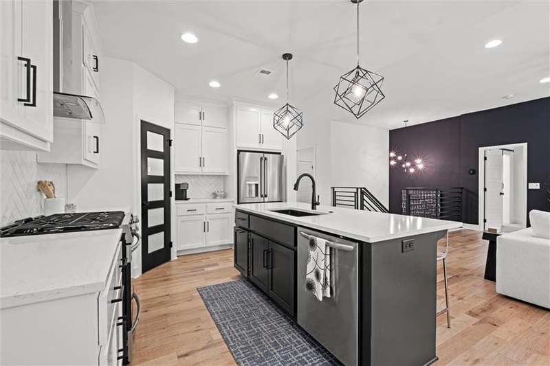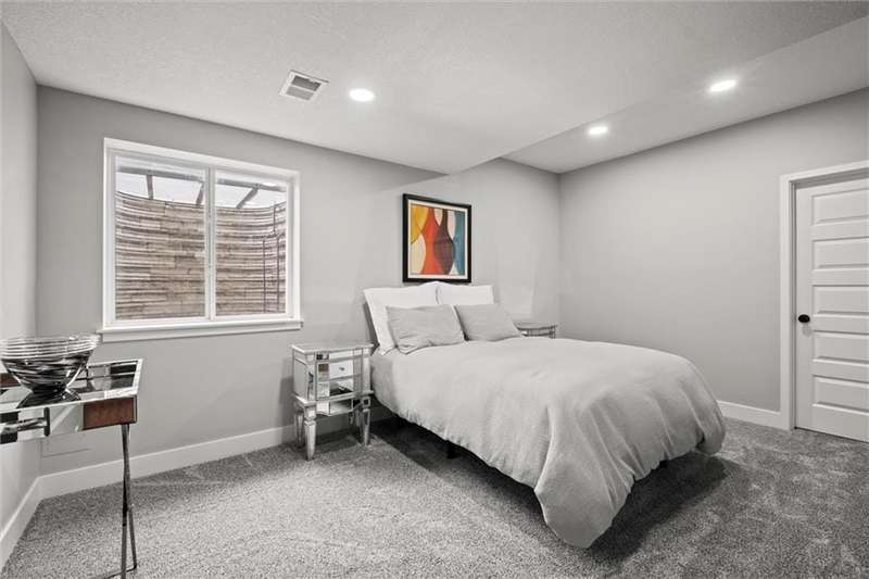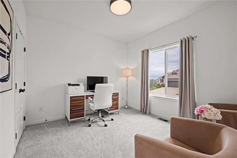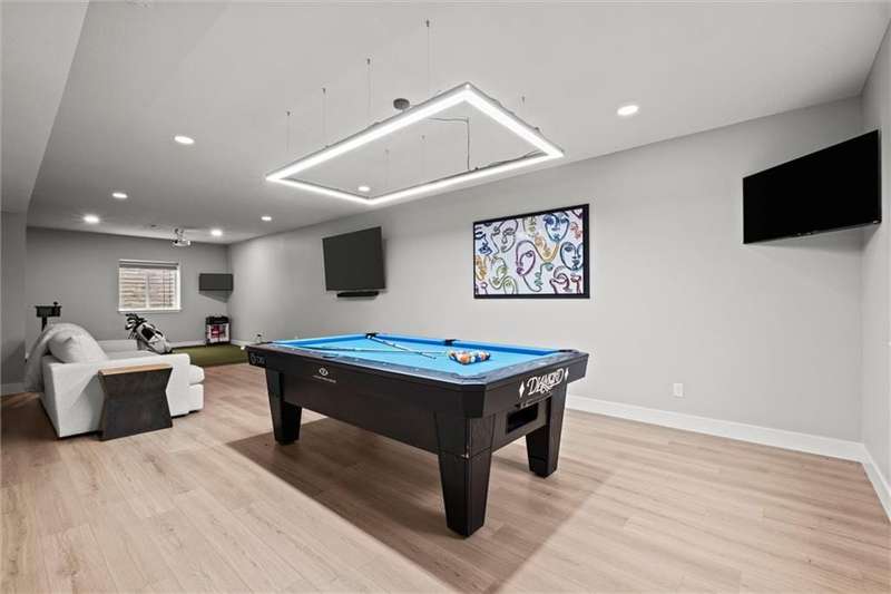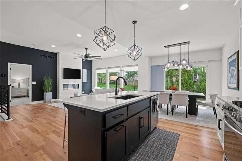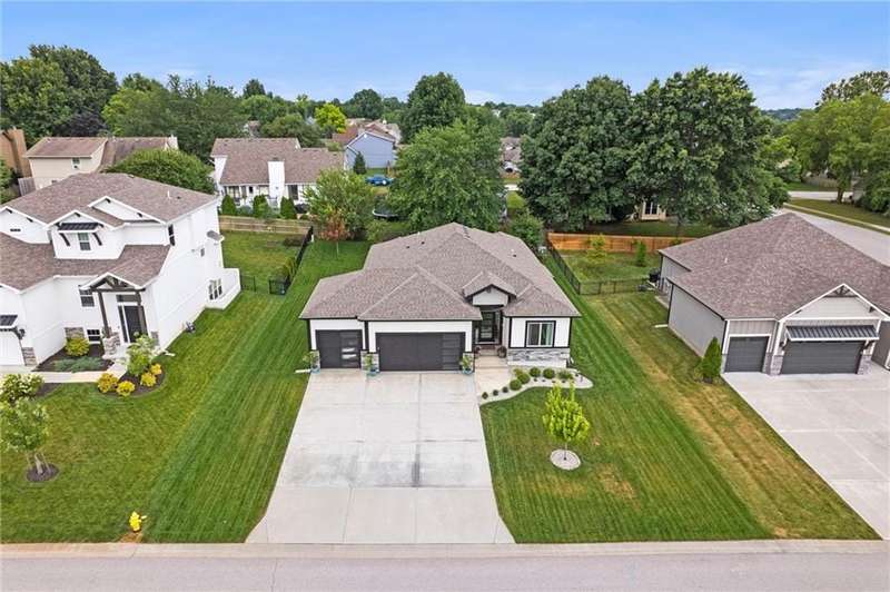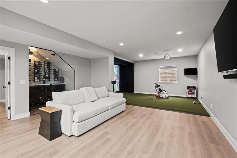 3 BEDROOMS ON THE MAIN! Looking for New Construction w Modern Finishes? Look no further! Contemporary Design meets Golf Lovers Dream Basement! This home has a STUNNING DESIGN but could easily be changed if you prefer more traditional decor. True Ranch w 3 Bedrooms on the Main Level. Bedroom 2 & 3 are on one side of the home while the PRIMARY SUITE is on the opposite side. Open Concept Kitchen w Gas Range, Large Quartz Island, Windows lining the back of the home, Gorgeous White Tile Fireplace, and Eat-In Kitchen. Primary Suite is spacious, On-Suite has Dual Vanities and Showerheads plus Rain Shower, LED Vanity Mirrors, LARGE WALK-IN CLOSET, and LAUNDRY ATTACHED TO PRIMARY! Lower Level consists of 4th Bedroom w Walk-In Closet, Full Bathroom, Rec Room, Bar Area, Wine Nitch underneath the Stairs, and Golf Simulator is Negotiable! Matching LVP is under turf and could easily be turned in to a 5th Non-Conforming Bedroom, Office, Workout Area, or larger Living Room. There's sill plenty of unfinished storage space as well! Enjoy your back Patio w Brick Firepit and Covered Area. Book your appointment today to tour this beautiful home!