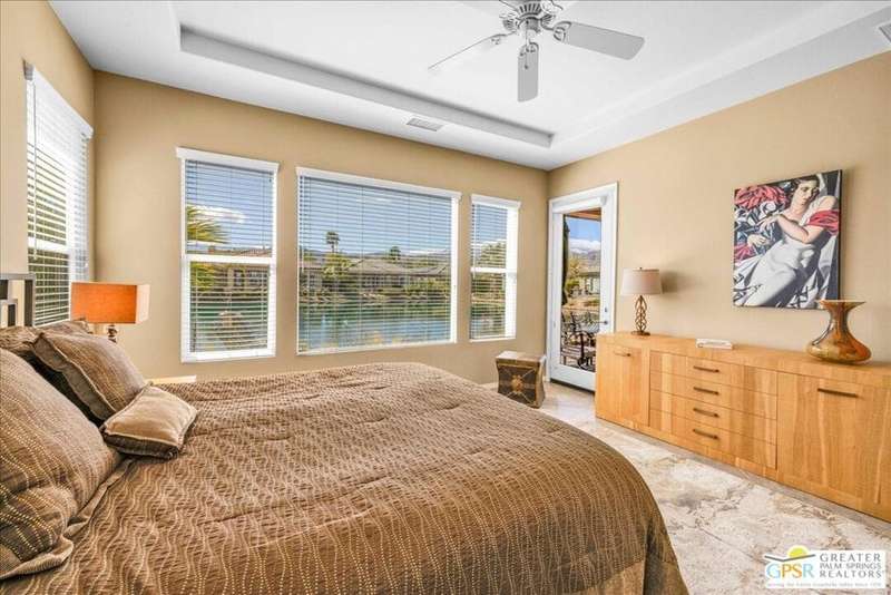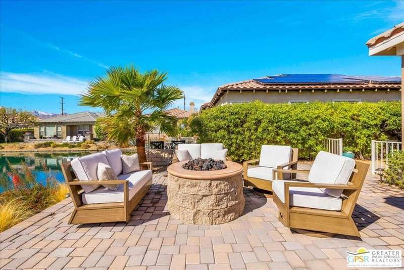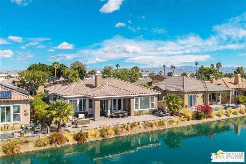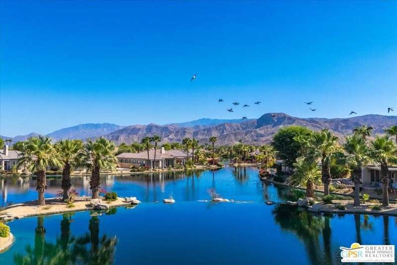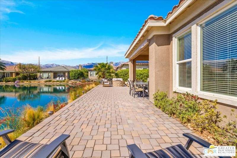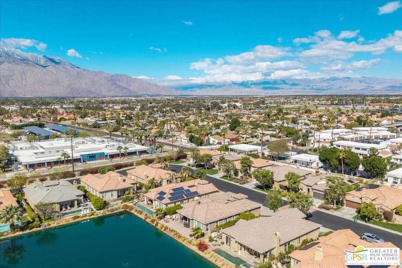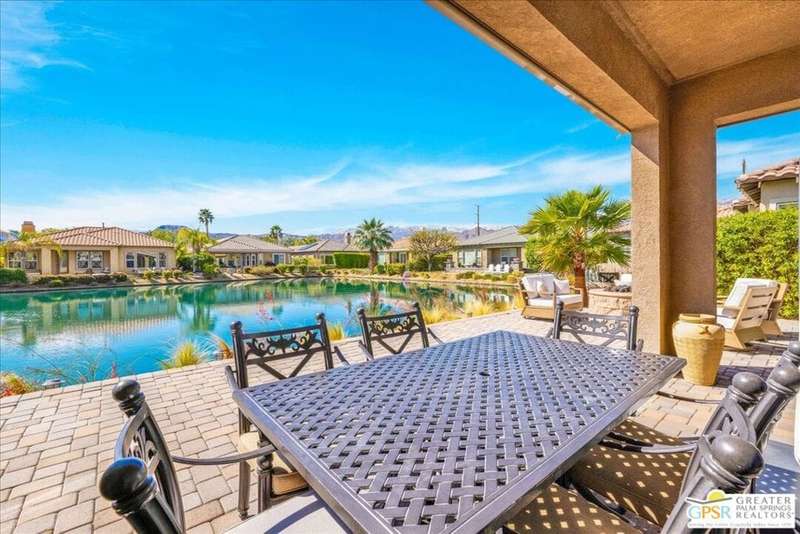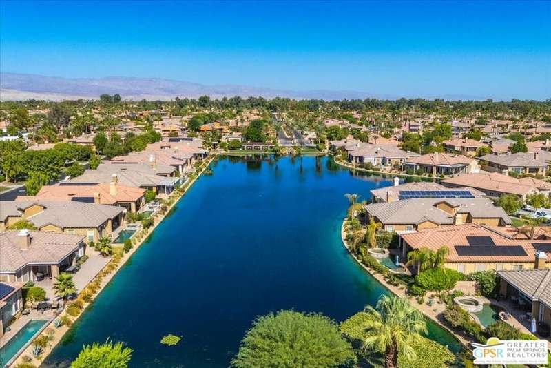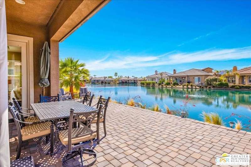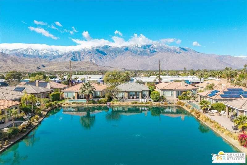 Lake and mountain views! LOW HOA!. Welcome to Lakeside Living at Mission Shores in Rancho Mirage. This updated home sits on the lake with a south facing backyard overlooking the beautiful lake and mountain views. The spacious patio is the perfect size for conversing around the fire pit and dining or just watching the ducks in the water. Inside, the recently updated kitchen flows into the great room with adjacent dining room and wet bar areas. This 3 bed/3 bath is currently being used as a 2 bed with a large family room area adjoining the kitchen, but it could be restored to a 3rd bedroom. The location is central to the airport as well as Downtown Palm Springs and El Paseo activities. The low HOA's include front yard maintenance, an elevated Spectrum package/1 gig Internet speed and very healthy reserves. Check this home out today.