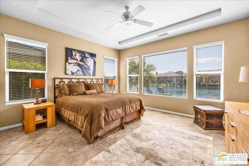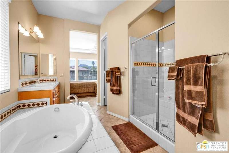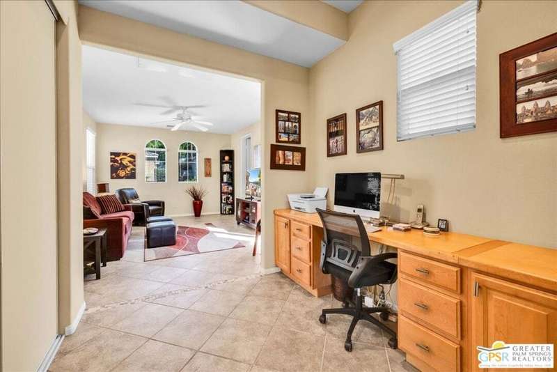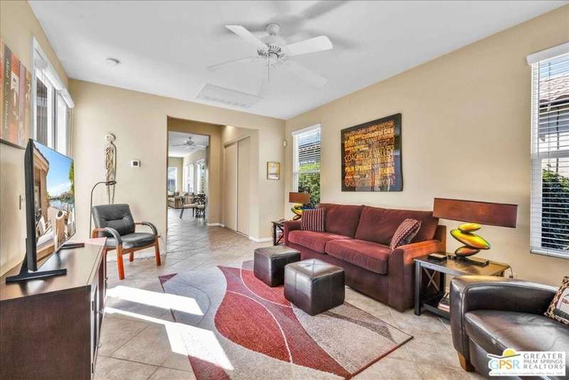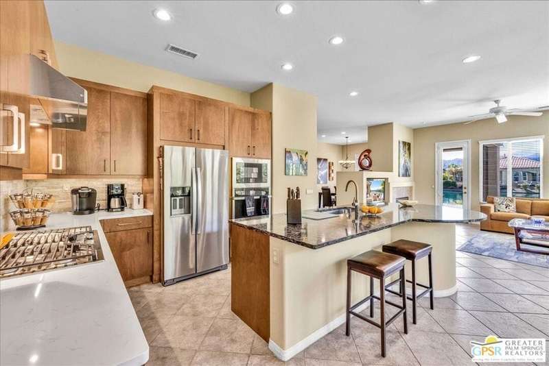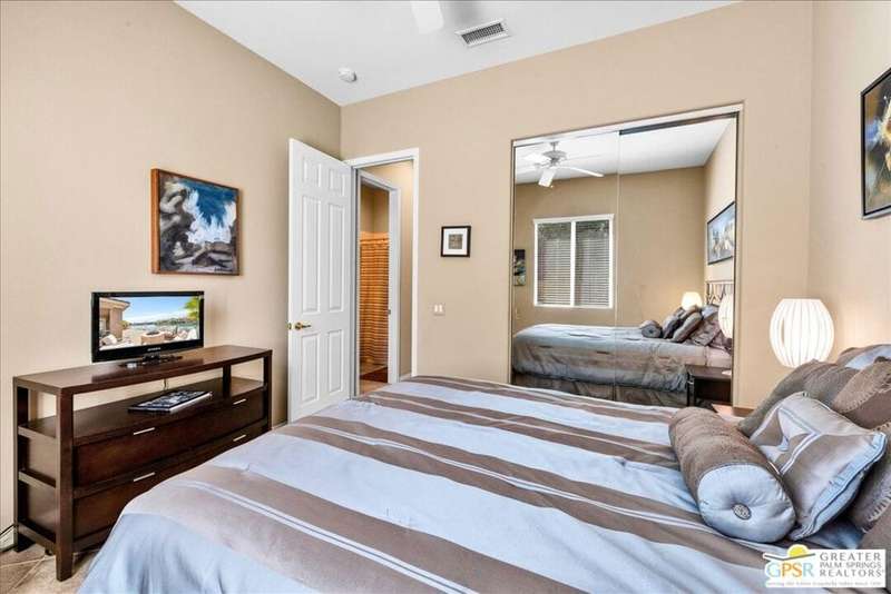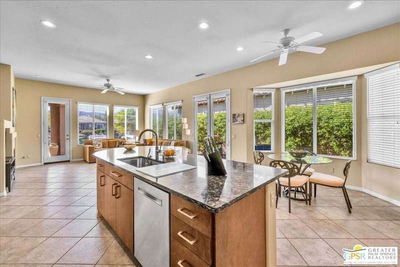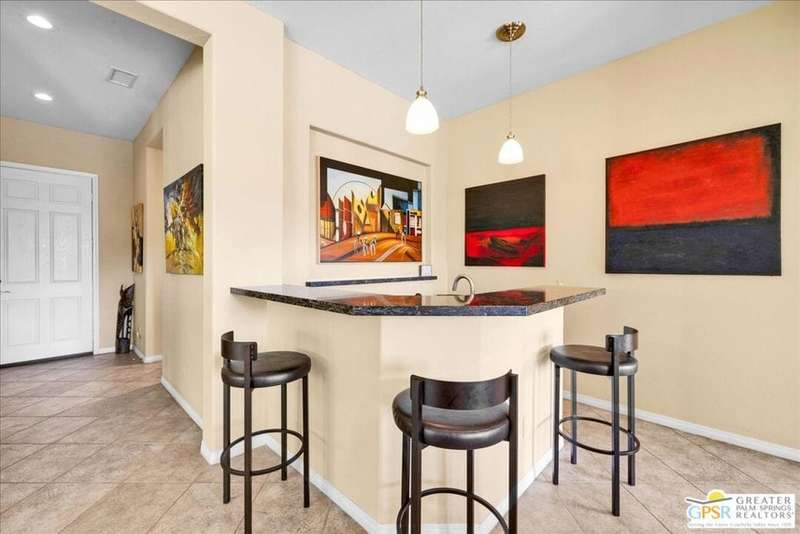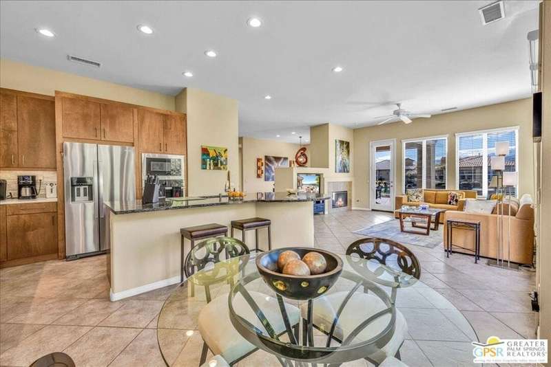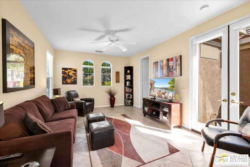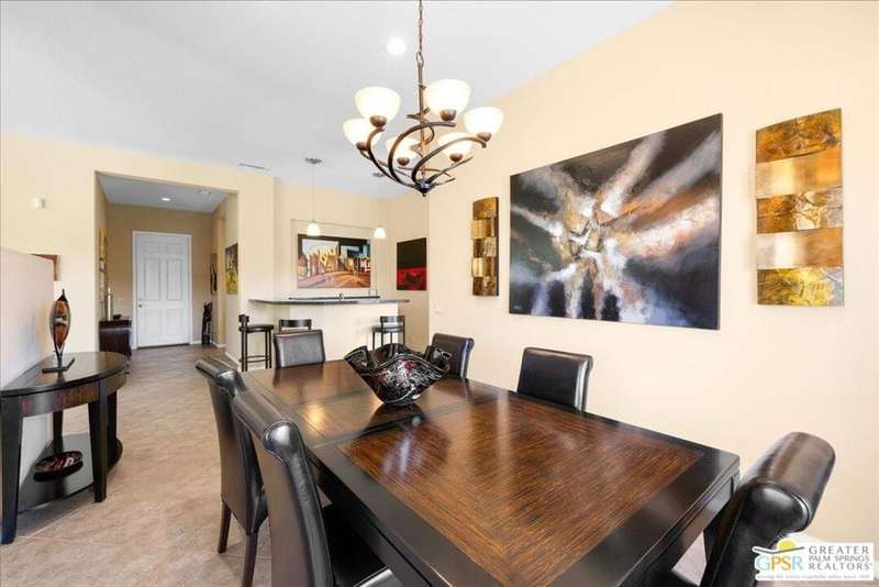 Lake and mountain views! LOW HOA!. Welcome to Lakeside Living at Mission Shores in Rancho Mirage. This updated home sits on the lake with a south facing backyard overlooking the beautiful lake and mountain views. The spacious patio is the perfect size for conversing around the fire pit and dining or just watching the ducks in the water. Inside, the recently updated kitchen flows into the great room with adjacent dining room and wet bar areas. This 3 bed/3 bath is currently being used as a 2 bed with a large family room area adjoining the kitchen, but it could be restored to a 3rd bedroom. The location is central to the airport as well as Downtown Palm Springs and El Paseo activities. The low HOA's include front yard maintenance, an elevated Spectrum package/1 gig Internet speed and very healthy reserves. Check this home out today.