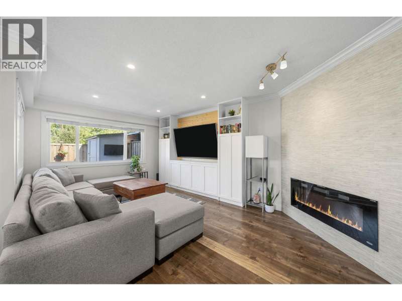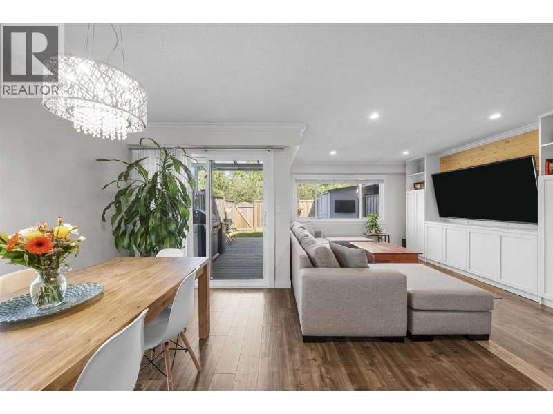 Stunning, fully renovated 3 bedroom, 2 bathroom, end unit townhouse in sought-after Steveston! This 1,428 sqft gem boasts an open-concept layout with a gourmet kitchen featuring quartz countertops, designer backsplash, and stainless steel appliances. The bright living area radiates with natural light, showcasing pot lights, laminate floors, electric fireplace, and custom built-in shelving around a stylish entertainment hub. Upstairs, three spacious bedrooms include a master with walk-in closet, remote-controlled blackout blinds, plus a spa-inspired bathroom with heated floors. Enjoy a private patio, perfect for gatherings, with outdoor TV and storage shed. Well-run strata, with EV charging, new fencing, and a warm community feel. Steps to Steveston Village, shops, parks, and top schools. (id:58403)