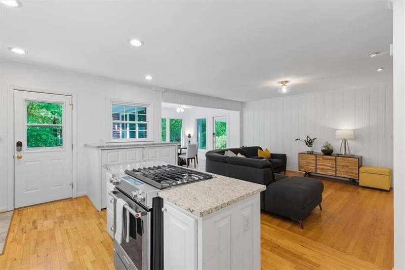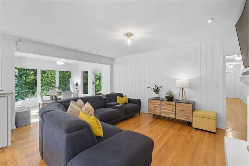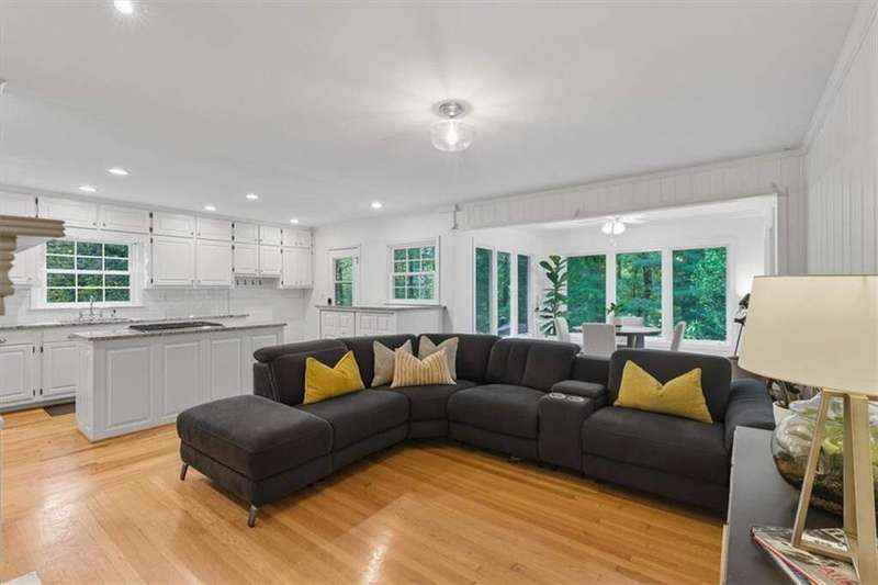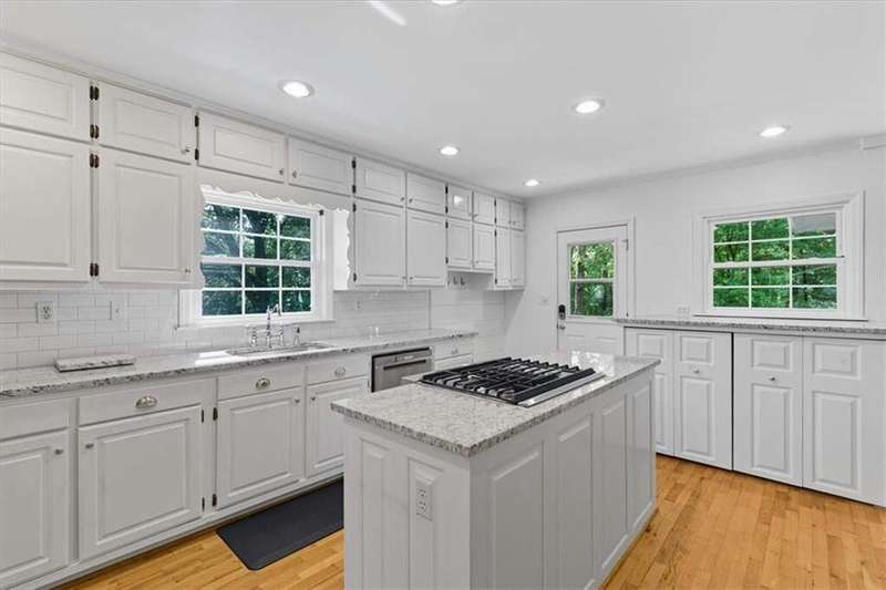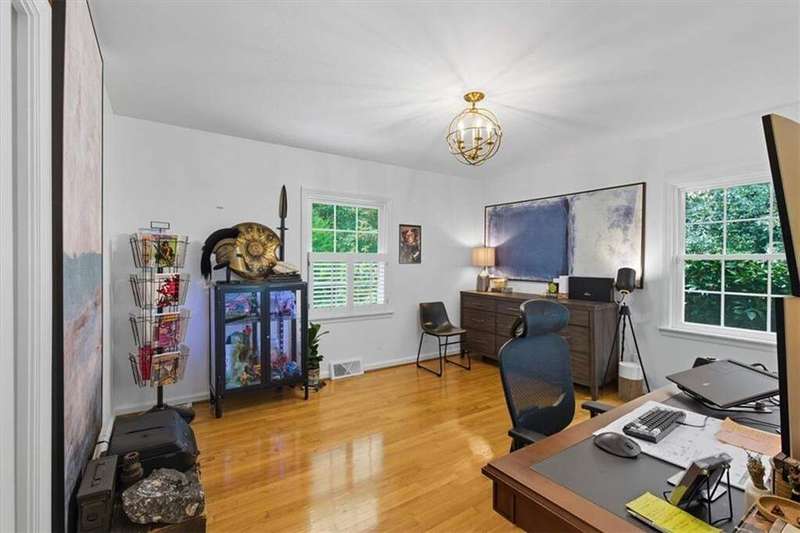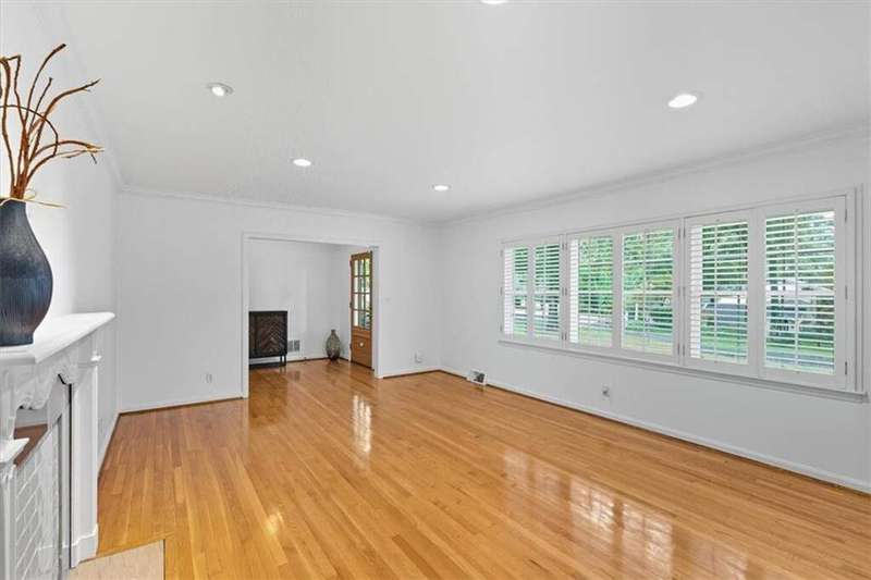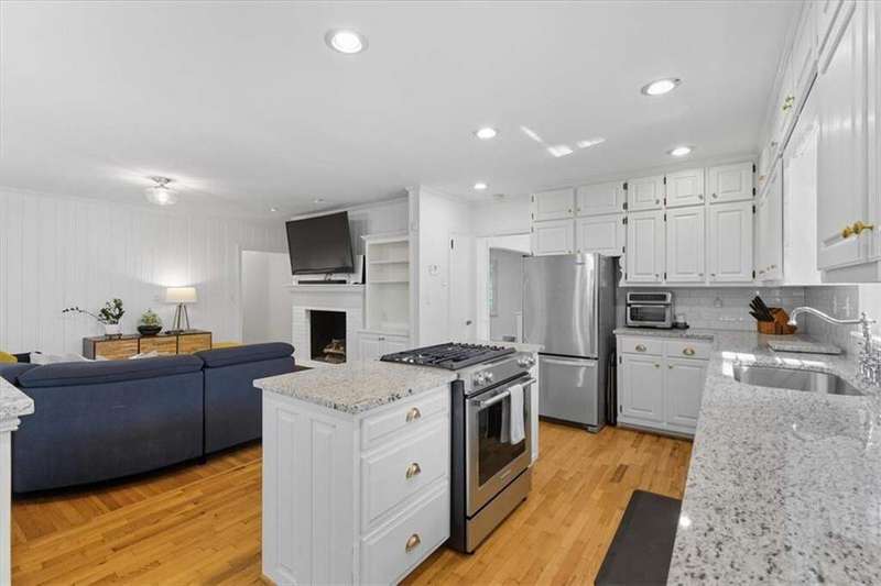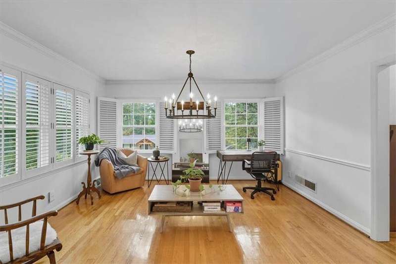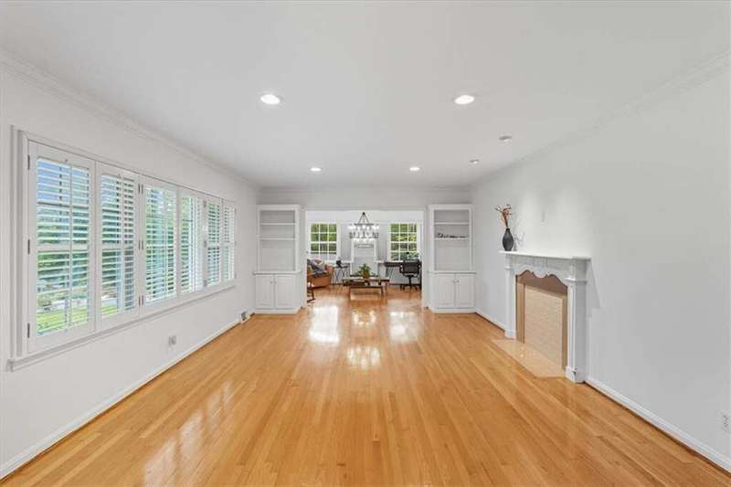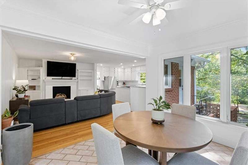 Beautifully maintained 3-bedroom, 2.5-bath brick ranch located in the sought-after Horseleg Estates neighborhood, perfectly situated on a desirable corner lot with mature landscaping and a welcoming front yard. Inside, hardwood floors flow throughout the inviting foyer and spacious living room, which features custom built-ins and abundant natural light. A separate sitting room provides flexible space for a formal dining room, office, or additional living area. The updated kitchen is complete with granite countertops, stainless steel appliances, and ample cabinetry, opening seamlessly to the cozy family room with a gas fireplace and additional built-ins. Just beyond, a light-filled sunroom is ideal for morning coffee or casual dining, with direct access to the patio and carport. The primary suite offers a private bath with a walk-in shower, while two spacious additional bedrooms share a Jack-and-Jill bath. A conveniently located half bath is perfect for guests. Outdoor living shines with a private patio for grilling and a firepit area strung with cafe lights for evening gatherings. A covered carport offers easy access to the home, and the garage provides extra parking and storage.