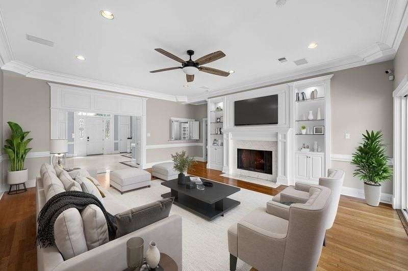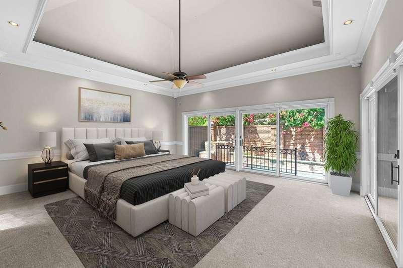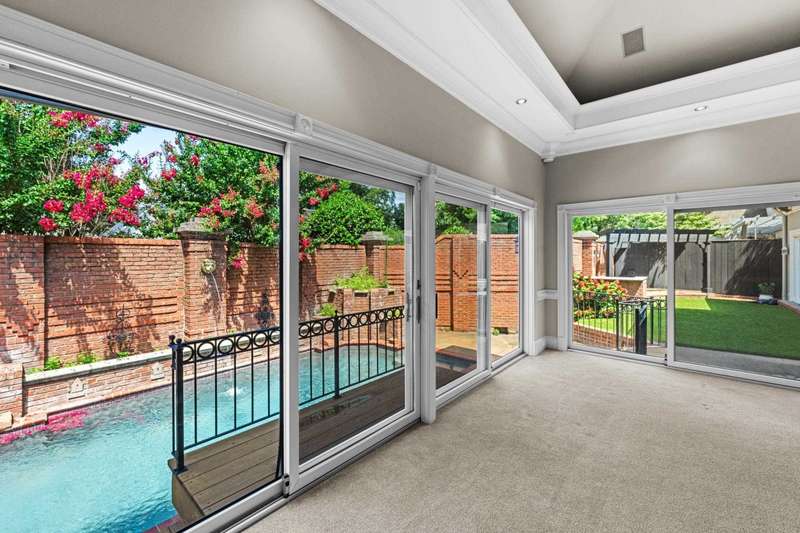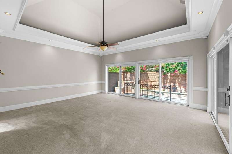 This exquisite home offers the perfect blend of timeless design and contemporary upgrades, set in an exclusive gated community! With soaring ceilings, an impressive two-story marble entryway, and expansive windows that illuminate the home with natural light, this property exudes both grandeur and warmth! There is impressive millwork throughout and a luxurious newly renovated primary bath! 2.5 baths on the main floor and 3 baths upstairs! A center room upstairs can serve as a den, office, or bedroom ? complete with its own private bath and balcony! Enjoy a relaxing living area, wet bar, and a spacious kitchen that opens into the formal dining area ? perfect for everyday living and entertaining!! The beautifully landscaped backyard features low-maintenance artificial turf, sparkling pool, pergola, and an outdoor kitchen area! A Generac whole-house generator, installed in 2023, ensures you'll never be left in the dark! This home truly has it all?elegance, functionality, and privacy!