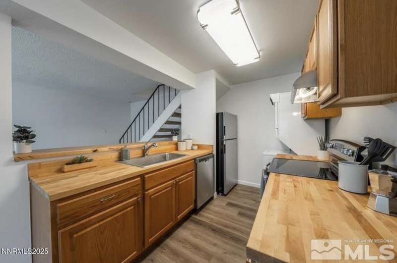 Investor Alert! Tenant occupied until September 1, 2026. 8 PERCENT CAP RATE! This turnkey and spacious 2 bed, 1 bath, 1 car carport townhome in the south of Reno has style and charm! This unit has been updated to the fullest with stainless steel appliances, a newer water heater, newer kitchen cabinets and butcher block countertops, and SPC vinyl plank flooring. A larger bedroom features a walk-in closet and beautiful views provided by brand new windows.