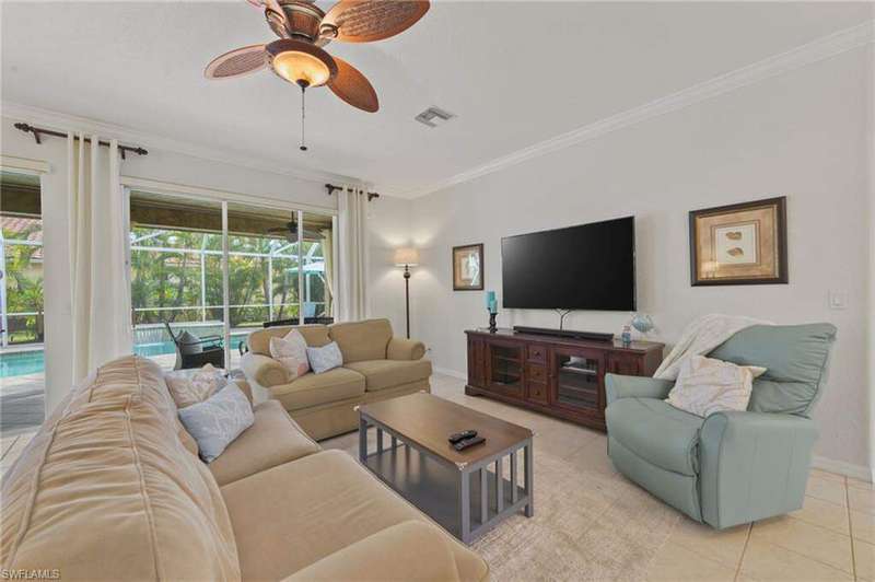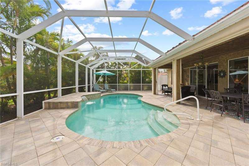 Featuring a New Roof (2023) and New A/C (2025), this TURNKEY FURNISHED POOL HOME in Herons Glen Golf & Country Club is truly move-in ready! The kitchen has newer stainless steel appliances, granite countertops, white cabinetry, and a breakfast bar that connects effortlessly to the main living and dining areas. The popular Ibis II split floor plan includes a large screened front porch, and a spacious lanai and pool deck perfect for entertaining or relaxing outdoors. Upgrades include crown molding, plantation shutters, motorized storm screens, color-changing LED pool lighting, no carpet (tile and luxury vinyl plank throughout), and a finished garage with ample storage. The den-with a door for privacy-makes an ideal office, reading room, or guest space. This corner lot home is surrounded by lush, mature landscaping that enhances privacy around the saltwater pool with waterfall feature and electric + solar heating for year-round enjoyment. Enjoy full hurricane protection with roll-down shutters front and back and accordion shutters on the windows. The 2-car garage features a Skeeter Beater screen, and the extra-wide paver driveway adds convenience. Offered fully furnished, this home even includes a golf cart so you can take advantage of all the community amenities-an 18-hole championship golf course, renovated clubhouse, fitness center, tennis and pickleball courts, bocce, shuffleboard, resort-style pool and spa, billiards, library, activity rooms, ballroom, and restaurant & bar. The price and quality of this pool home make it an incredible opportunity to own in one of the area's most sought after communities. Thoughtful updates and pride of ownership make this home stand out. Schedule your private showing today!