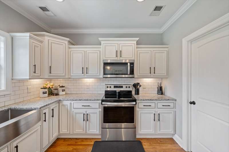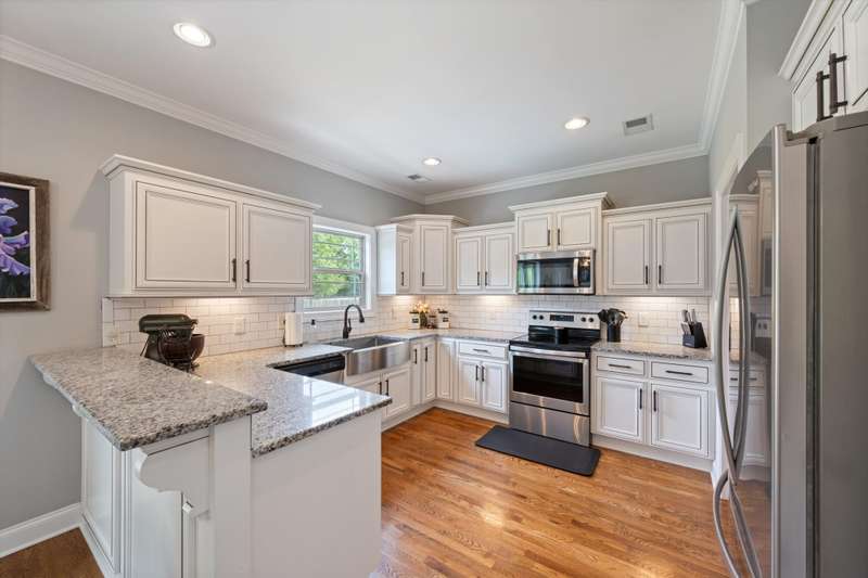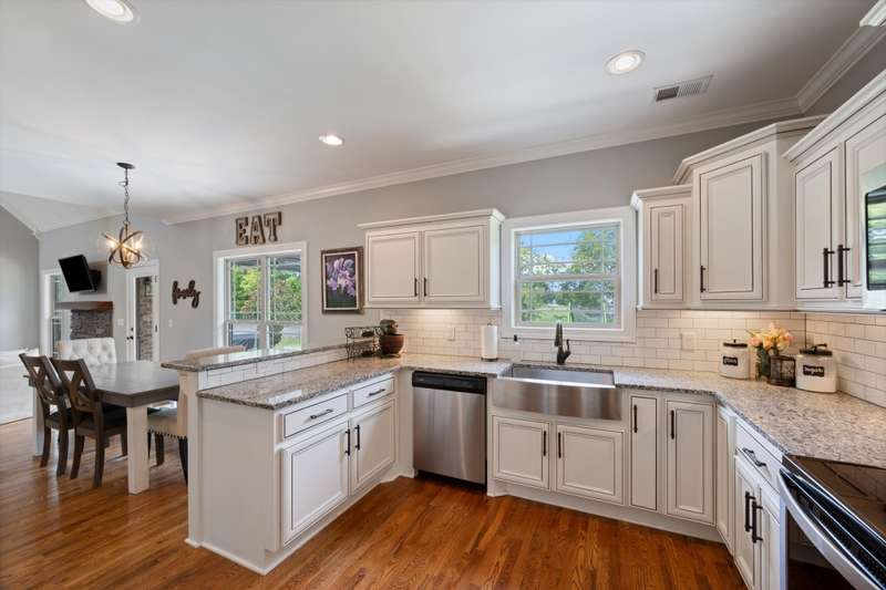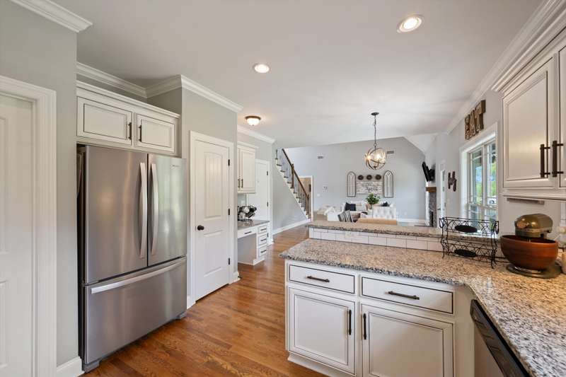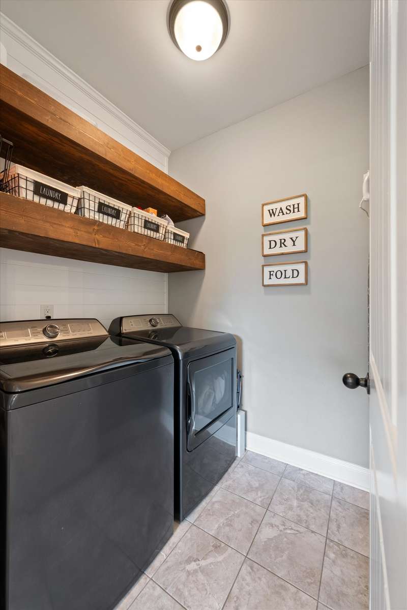 You are welcomed into this home to find an open-concept layout that seamlessly connects the living, dining, & kitchen areas. The spacious living room centers around the warmth of a gas fireplace, perfect for gatherings or relaxing evenings. The kitchen is a chef's delight, featuring granite countertops, a large country sink, & plenty cabinets & counter space for meal preparation. The laundry room has been enhanced with custom built-ins, adding convenience & organization to your daily routine.