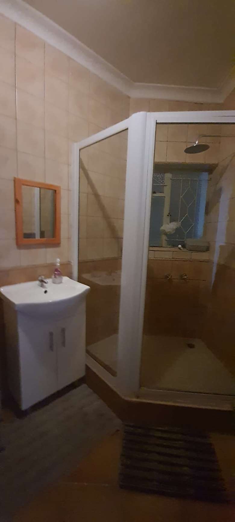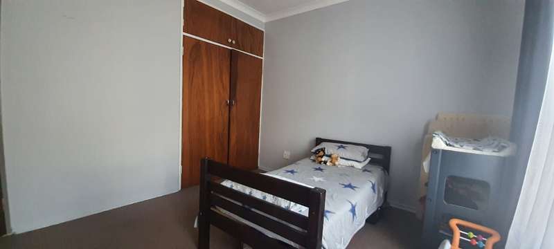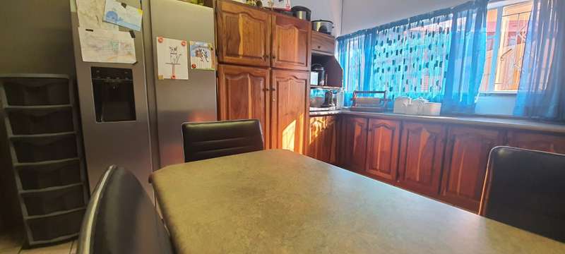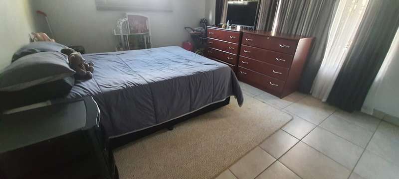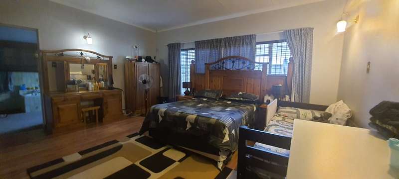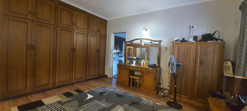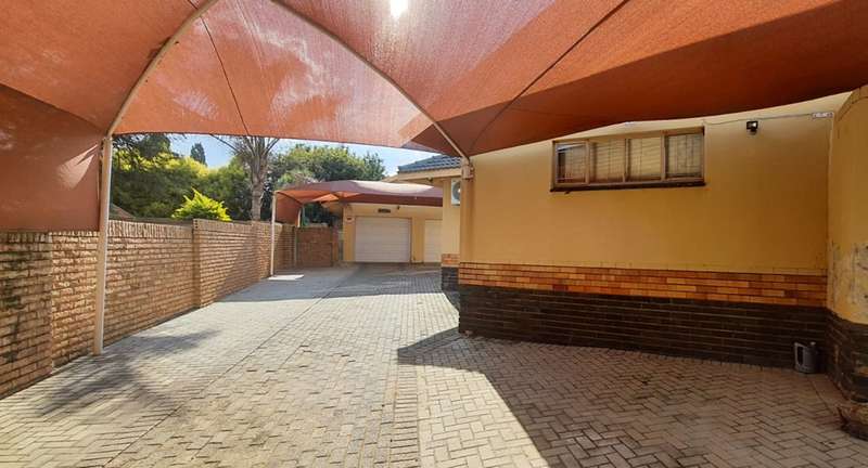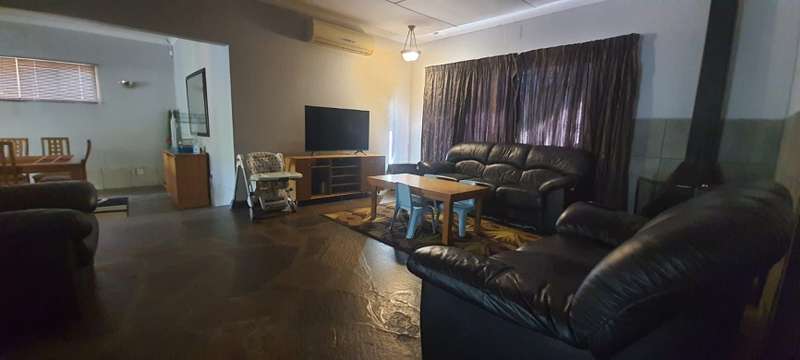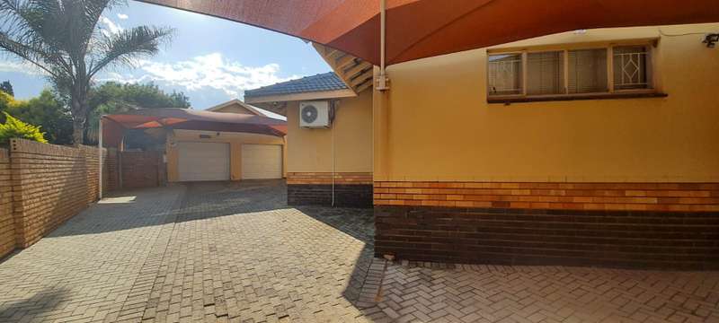 One of the largest enclosed LAPA’s you will find at a private home. Built in braai and bar area. Home is located, walking distance, in between public and private schools. Home is rather sizable, open plan living room (air-conditioner & fireplace), dining room, study (built in cupboard -could also be used as family room or turned into a fourth bedroom), kitchen( breakfast counter, wooden cabinets), laundry, 3 Bedrooms (built in cupboards, air-conditioners) and 2 Bathrooms (family bathroom has been fitted with shower, while the ensuite in main bedroom is fitted with bath). Swimming pool is in the front garden. Paved driveway leads along the side of the house , underneath 2 double shade net carports up to the double garage at the back of the property. Staff quarters are at the back of the garage (could be easily opened into lapa as additional living space) Property is enclosed on all sides with 6 foot walling with motorized gate allowing the only access.