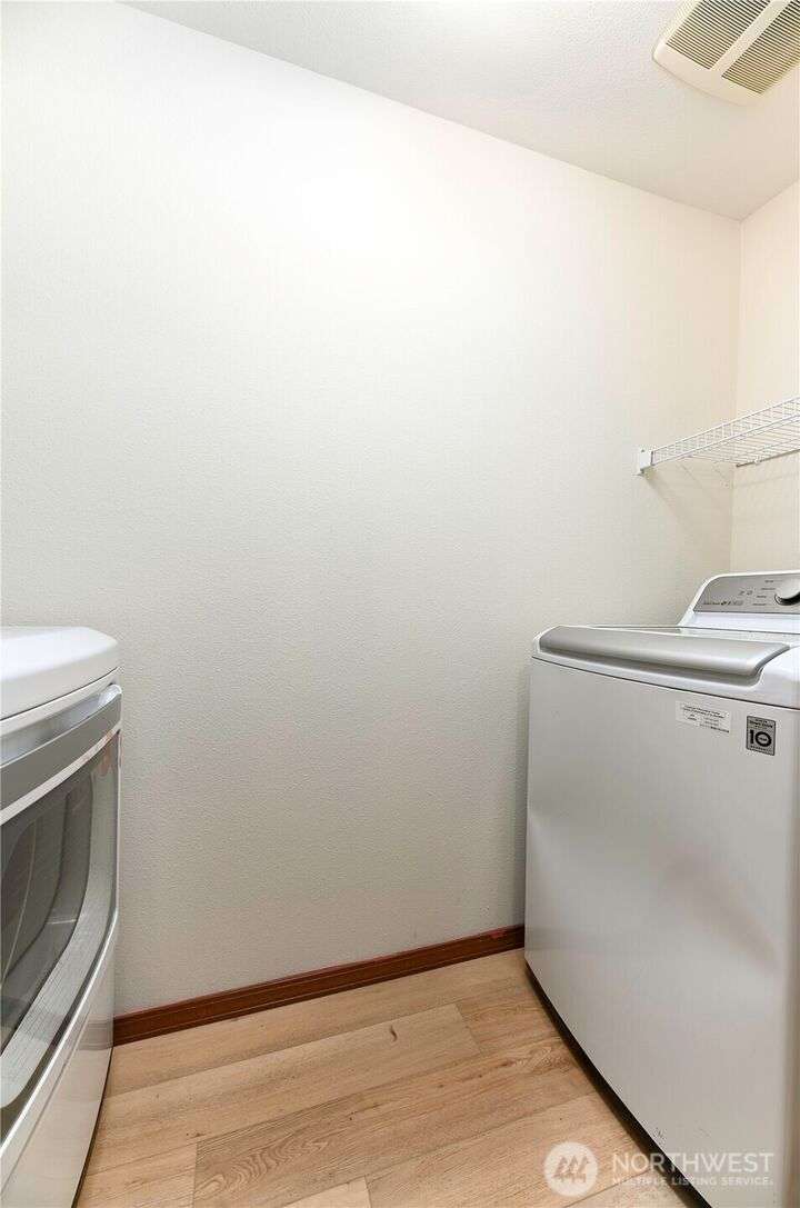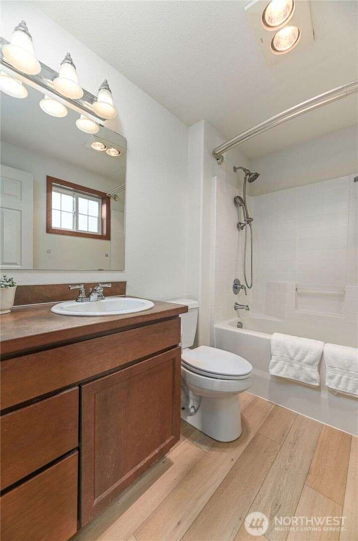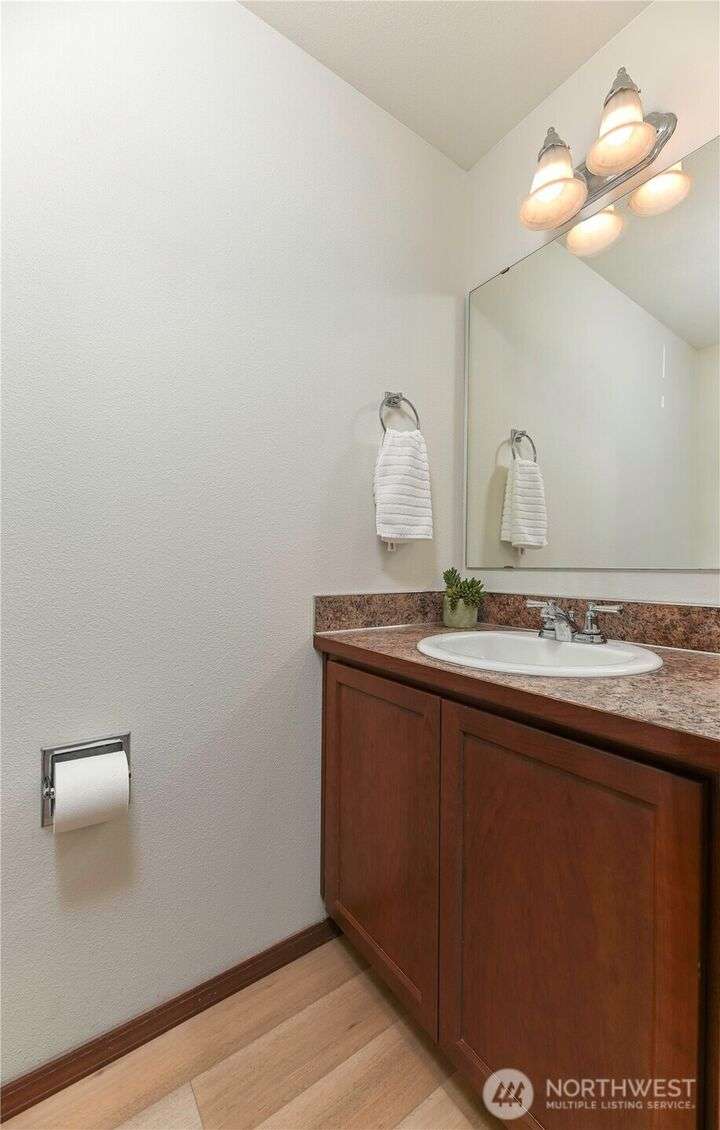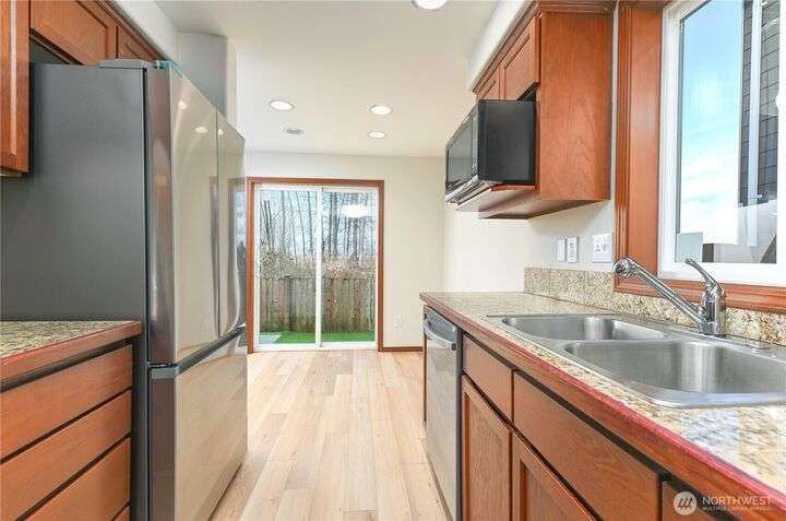 Freshly updated 4 bedroom property with a cheery, covered entry leading to the heart of the home’s main floor. New vinyl plank throughout and updated kitchen appliances. All new flooring upstairs as well, along with a light filled primary bed & bath w/huge walk-in closet. Recently painted interior and exterior. Fenced and newly turfed backyard looks at an expansive and private greenbelt w/peaceful views. Community offers fantastic amenities, includes playgrounds, a basketball court and soccer field. With ductless A/C and no shared walls this turn key property combines comfort with community living.