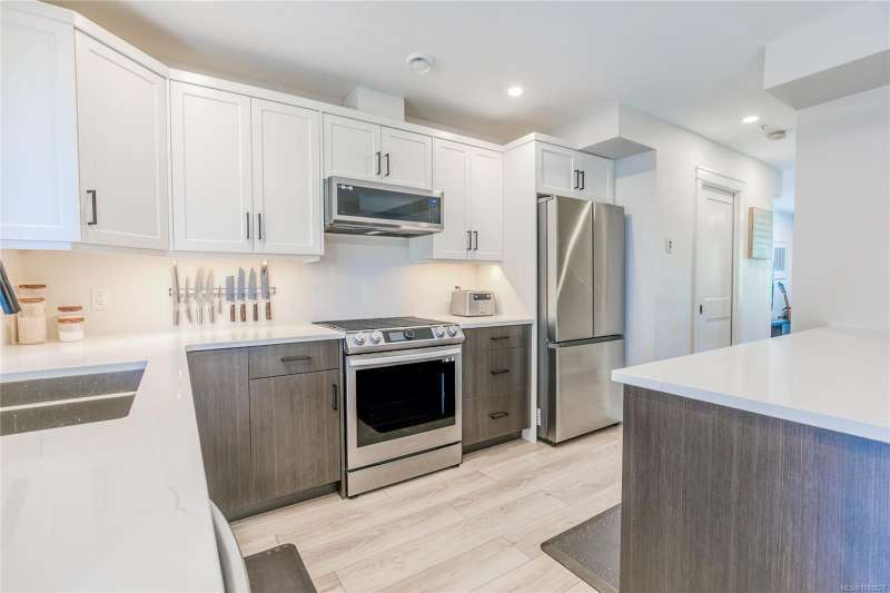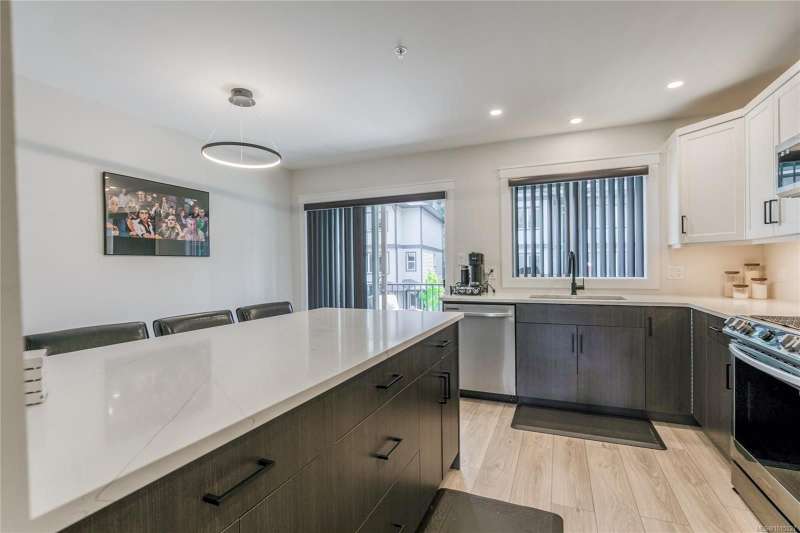 Better than new !! Here's a two year old deluxe townhome located in The Southbend complex at the top of Ninth Street. Offering a spacious living room, beautiful bright kitchen, 3 bedrooms, 4 bathrooms and more. The present owners have upgraded most bathrooms with quartz counters and undermount sinks, additional wall mount cabinets and shower door. The kitchen now has a beautiful matching island and the range hood fan has been replaced with a quality microwave/exhaust unit. All windows have custom fit blinds. An interesting feature of this home is the lower flex room with separate entry/exit door and its own 4 piece ensuite. Presently used as a bedroom but could be an office etc. Another bonus is the convenient street parking available. Situated at the end of a no-through road this home is close to nature with access to walking trails, all levels of schools, shopping and a bus stop around the corner. All this plus low strata fees and the remainder of a 10 year new home warranty.