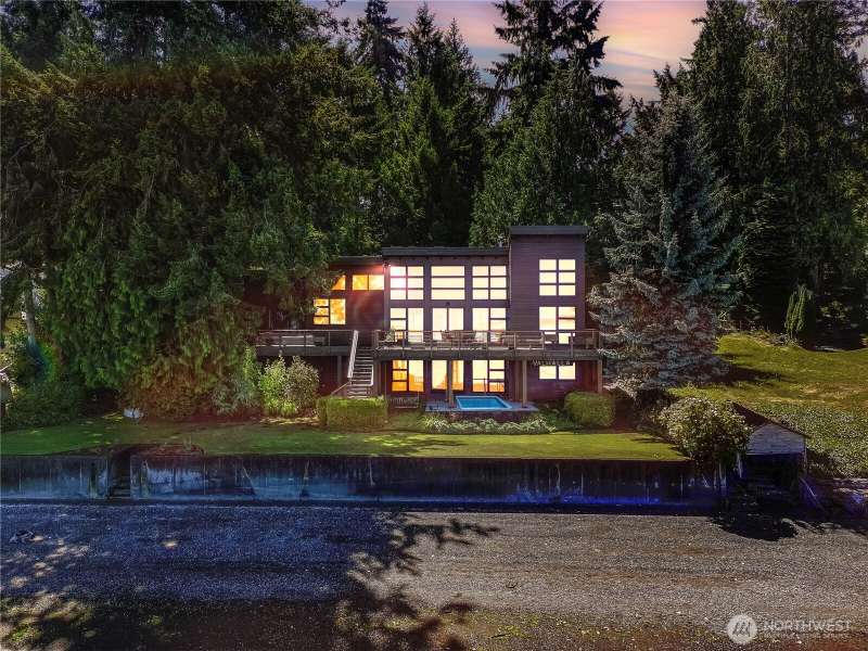 Experience coastal living at its finest in this stunning NW Contemporary on Johnson Point! Enjoy sweeping Puget Sound views with Harstine Island to the south, Longbranch to the north, and breathtaking sunsets over the Olympic Range through a wall of west-facing custom wood windows. Over 4,000 SF of living space with main-floor primary suite, gourmet kitchen, expansive great room, and 1,000 SF deck capable of hosting 50+ guests. Downstairs offers a large rec space, guest suite, ¾ bath, and direct access to the swim spa and patio. Detached oversized 2-car garage features a 600+ SF guest loft with its own ¾ bath—perfect for Airbnb/VRBO. Just 8 steps to a walkable beach with full Mt. Rainier view—this is true Northwest luxury!