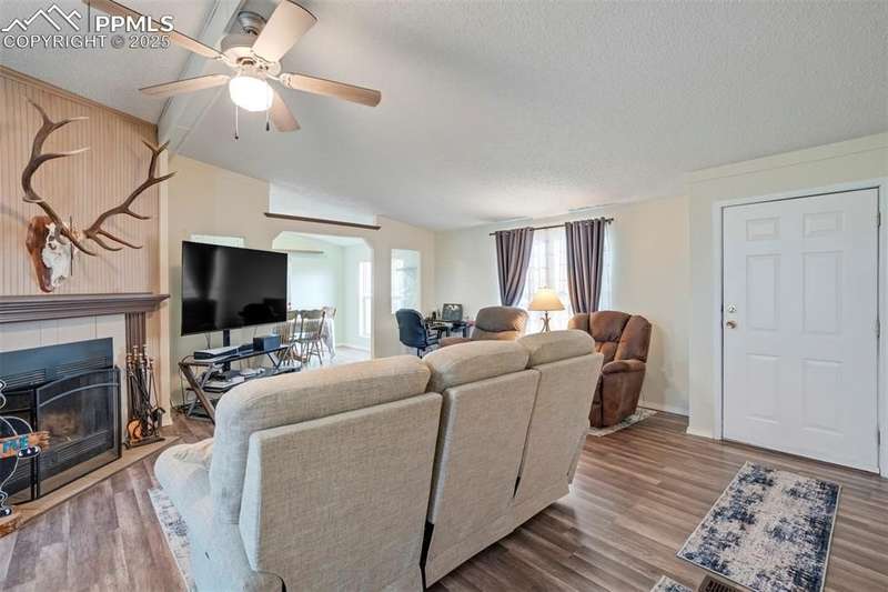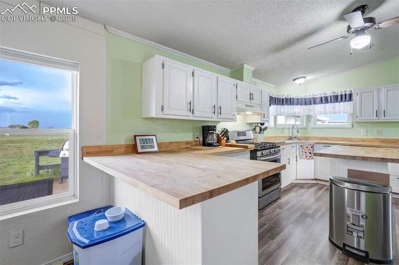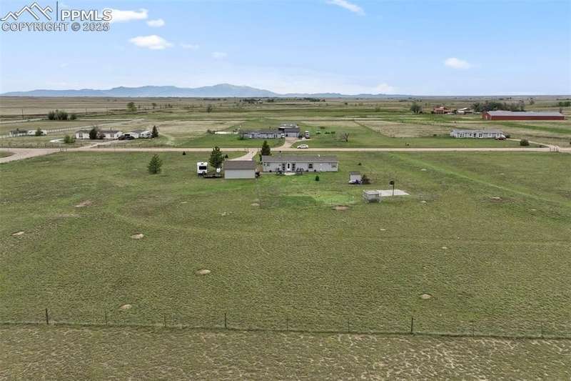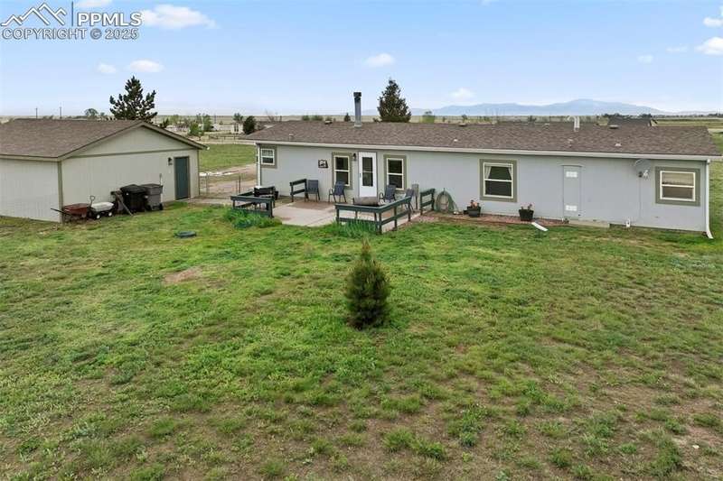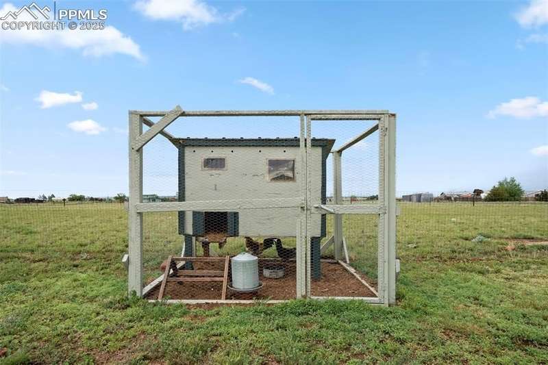 Super Nice Main Level Ranch Home on Fenced Corner Lot on 5 Acres w/Superb Peak & Mtn. Views!! 10 Minutes to Falcon, 15 Minutes to the Springs & 10 Minutes to Schriever AFB!!! Nicely Maintained Home w/New Int./Ext. Paint, New Laminate Wood Floors, New blinds & Storm Doors, New Butcher Block Counters!!! Step into the Open/Airy Floor Plan w/Large Great Room/Living Room w/W.B. Fireplace!! Large Eat-In Kitchen w/SS Appliances Along with Breakfast Nook Walking out to Quiet/Serene 20x17 Patio Overlooking Fenced Backyard w/8x8 Shed, 8x8 Chicken Coop & 24x18 Basketball Court w/Concrete Pad for Potential New Building!! Private Dining Room w/Lots of Light! Spacious Master Retreat with W/In Closet & 5 Pc Spa Bath w/Jetted Tub. 2 Large Xtra Bedrooms; 1 with W/In Closet and a Nice Full Guest Bath!! Super 24x24 Oversized 2 Car Garage That's Set Up for the Perfect Workshop w/Painted Floors!! This Place ins Clean & Move-In Ready!!! A Must See!!!