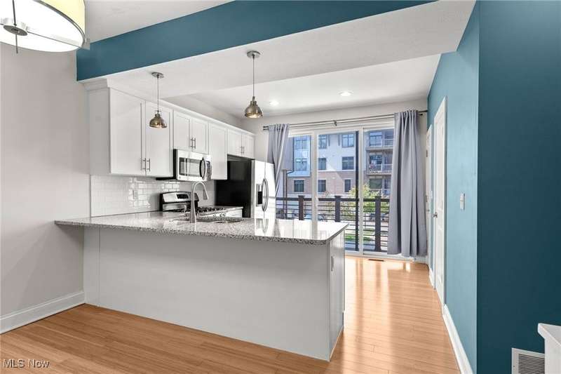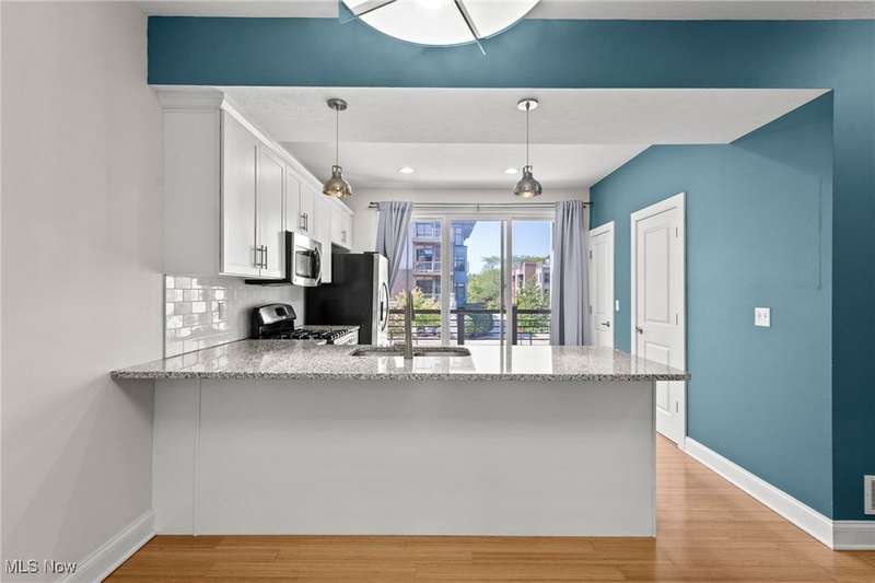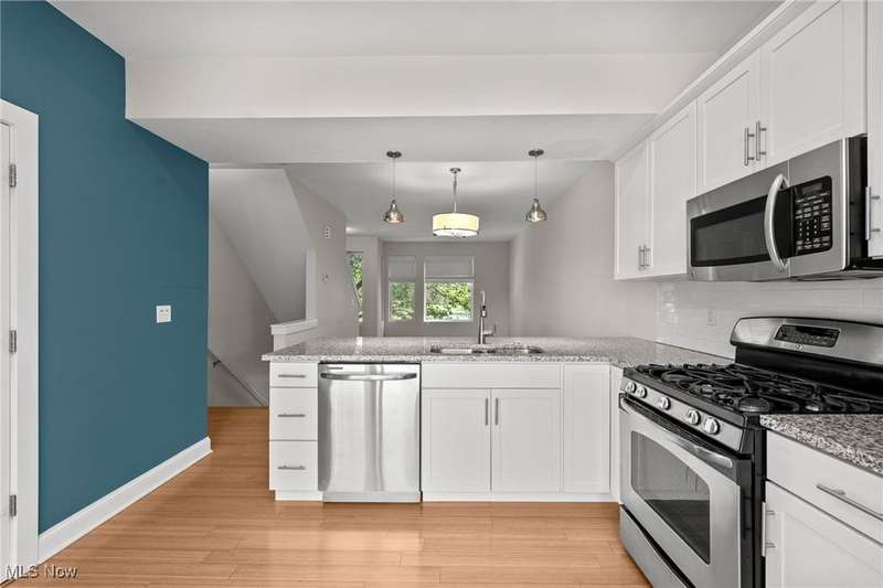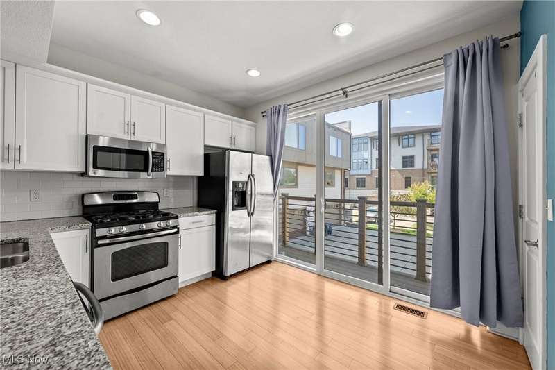 Amazing Bluestone contemporary townhome, and only minutes from University Circle's Hospitals and Universities. This home features fresh interior paint and is move-in ready! Full of upgrades and luxury finishes including bamboo wood floors. Bright & open Living-Dining-Kitchen. The Kitchen features white cabinetry with granite countertops, subway tile backsplash & stainless steel appliances. Sliders from the Kitchen lead to a deck for grilling or to unwind & relax. Two Bedrooms, Two full Bath Rooms & Laundry on top level. Bonus Room On ground level. Attached garage plus plenty of surface parking for guests. Move right in and enjoy care-free living!