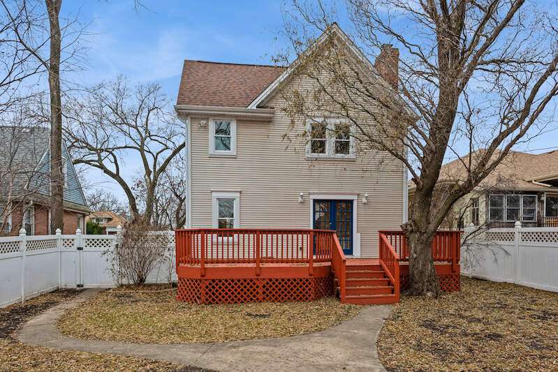 Victorian Elegance Steps from the Heart of Elmhurst. Experience the distinguished charm of this updated Victorian residence, ideally positioned on prestigious Evergreen Street-just 3.5 blocks from dynamic Downtown Elmhurst. This architectural landmark blends timeless character with forward-thinking upgrades, including a flawless addition, newer windows, siding, and roof-all executed with exceptional craftsmanship. Lead guests through the iconic wrap-around porch with recessed lighting and into an interior that radiates sophistication: a grand oak staircase, refined trim details, solid oak doors, and richly finished hardwood floors. A sun-drenched loft/library offers a serene escape, while the expansive family room with a brick fireplace is the ideal backdrop for meaningful gatherings. The private primary suite is a refined retreat, featuring a spa-inspired en-suite bath and a generous walk-in closet. French doors open to a sprawling deck and a professionally landscaped, fully fenced yard. Oversized 2.5-car garage, discreetly accessed from the alley, enhances function without compromising curb appeal. Set among newer luxury homes and within the highly acclaimed Hawthorne/Sandburg school district, this 3-bedroom, 2.5-bath home is more than a residence-a legacy of excellence in one of Elmhurst's most coveted locations.