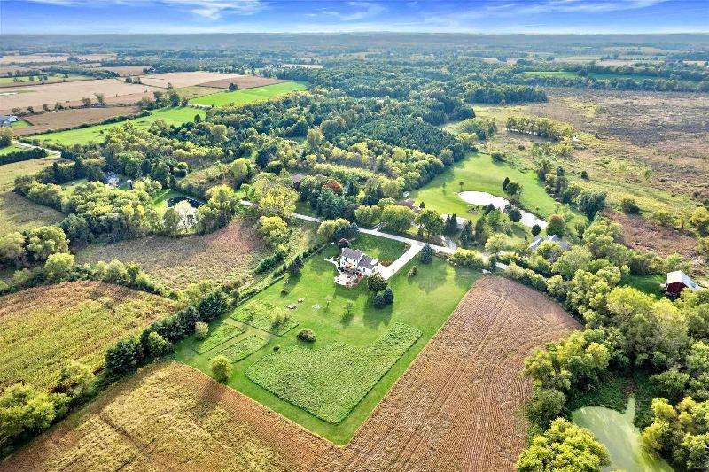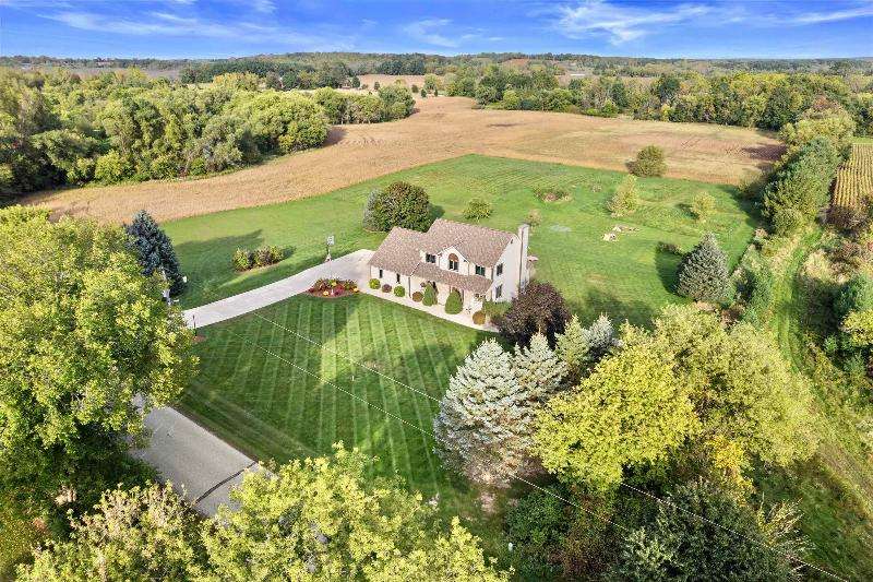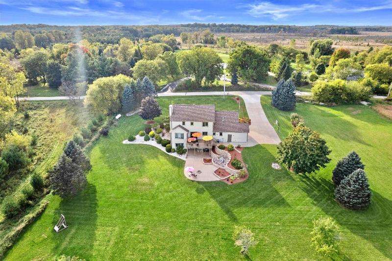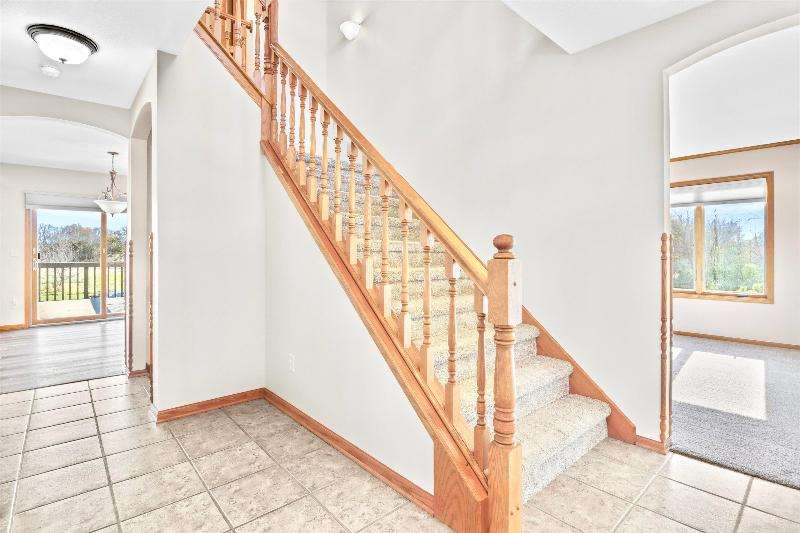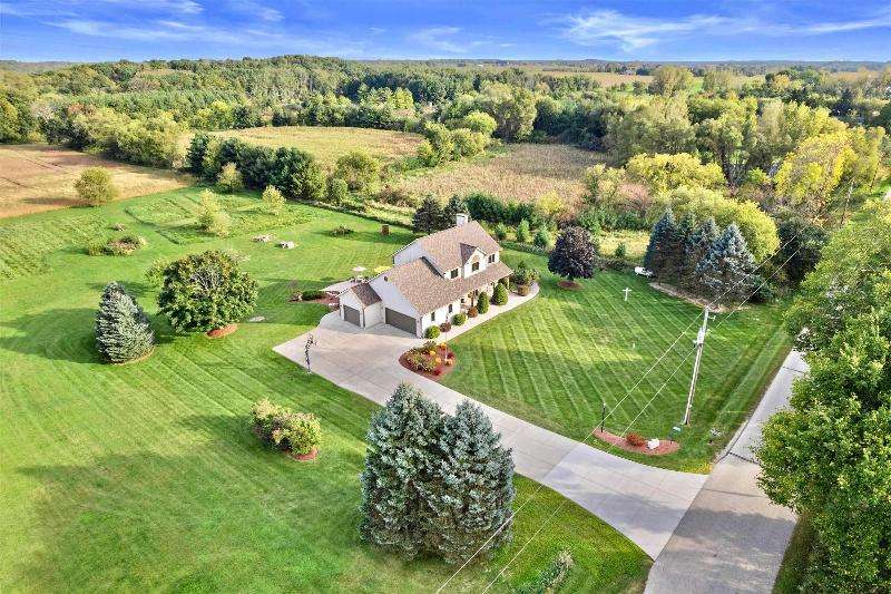 Nestled on a sprawling rural canvas, this crowning, meticulously kept home is a once in a lifetime, one in a million opportunity. Inside, chef inspired kitchen boasts thoughtful culinary design. Towering windows spill ample natural light across an open concept floor plan segueing flawlessly from one space to the next. First floor home office provides work-from-home option. Giant living room centers on gas fireplace, sliding doors lead to massive deck and walk down to 50x25 concrete patio. Cathedral ceilings soar overhead in Master Suite, featuring double vanity bath and walk-in. Bonus Room serves as fourth bedroom. Finished Lower Level boasts Rec Room, with walk out to patio, and full bath. New roof, furnace, AC and flooring. Whole home generator. Modestly priced for expeditious sale.