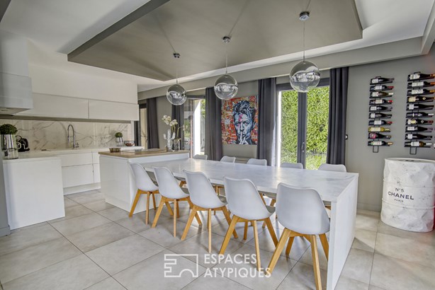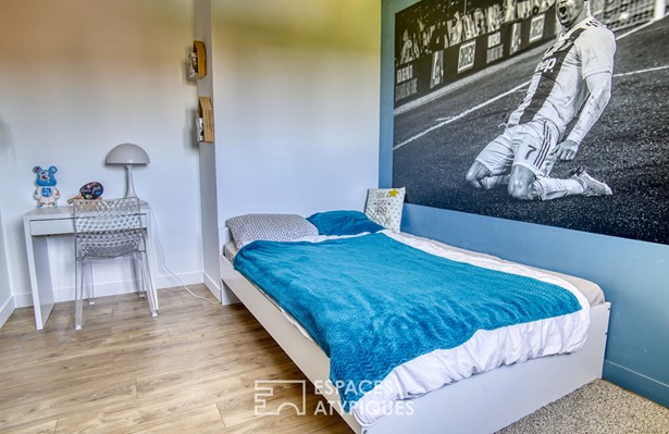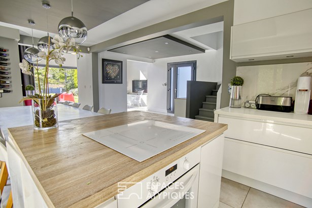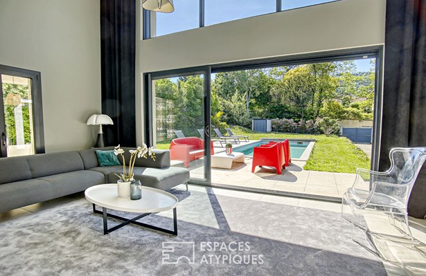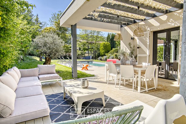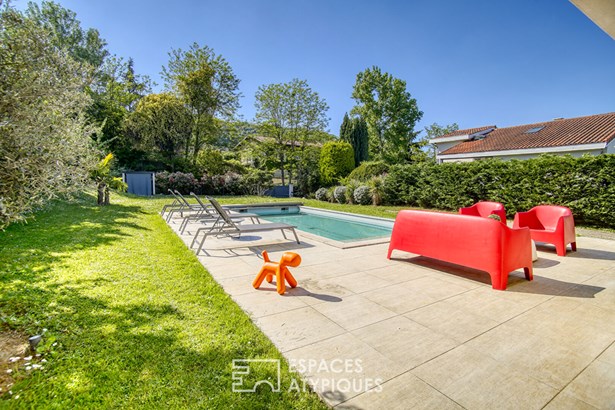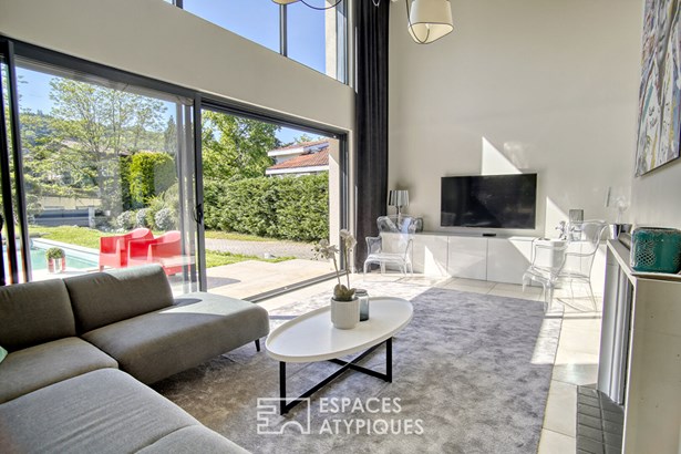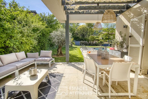 At the end of a cul-de-sac and in absolute calm, this house of approximately 200m2 of living space is built on a flat plot of approximately 1000m2, not overlooked, on the heights of Collonges-au-Mont d'Or. The entrance to the house opens onto a large double living room opening on one side onto a contemporary kitchen with clean lines and on the other onto the terrace and the garden. The cathedral ceiling of the living room and its double window give a certain cachet to this living room. On the same level, a bedroom with its bathroom allows a sleeping area on the ground floor. A laundry room and a games room complete this level. Upstairs, a beautiful master suite takes place with its dressing room and its private bathroom. For the children, two bedrooms and a bathroom complete this level. The land, well exposed, landscaped and not overlooked, benefits from a terrace area under a pergola and a heated swimming pool with heat pump. Air/water heat pump with underfloor heating. Reversible air conditioning. Bus and school nearby. DPE: C /. GES: C Contact: Guillaume - 06 67 69 73 00
