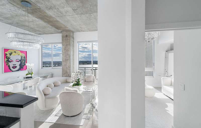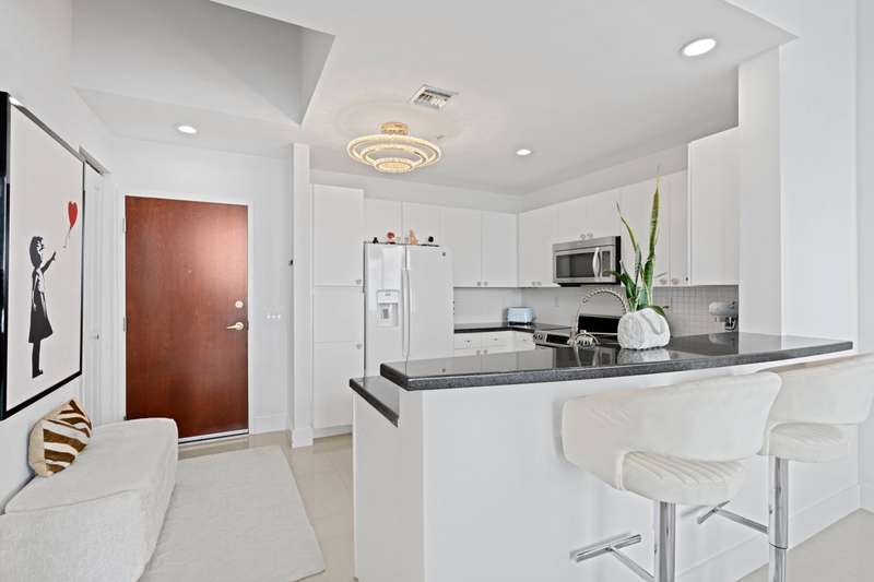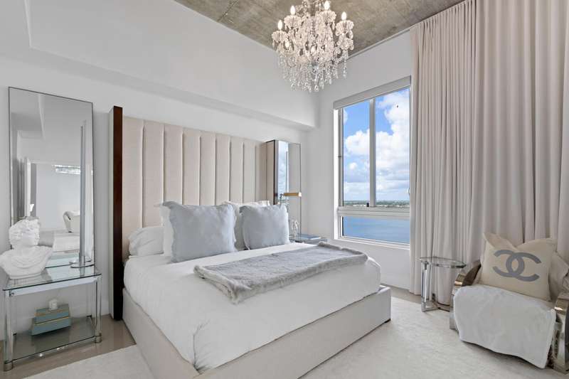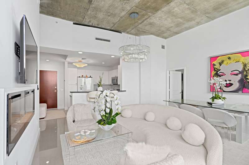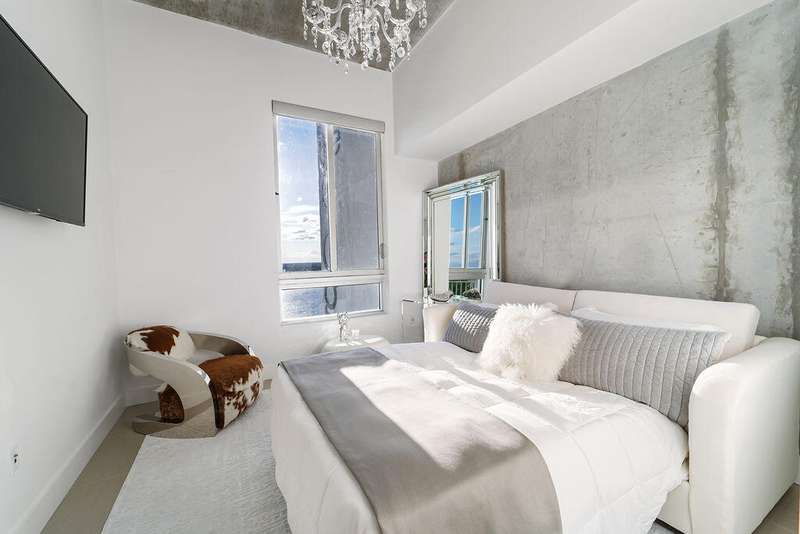 Luxurious 2/2 loft style PENTHOUSE with 12' concrete ceilings! Enjoy expansive views of the lake on your private terrace and watch amazing sunsets! Beautiful light fixtures can be see throughout the residence. Featuring a gorgeous living and dining room area with chic stylish furnishings, a fireplace and Lutron shades w/smart home technology, Designer features include tile floor, luxury kitchen with SS appliances, granite counter tops with tile backsplash. The sleek primary bedroom en-suite has floor to ceiling blackout curtains, large walk-in closet and flat screen TV. The Edge has a 24hr lobby attendant, garage parking and fabulous amenities, including a rooftop Olympic sized pool, club house, fitness center, Zen/Yoga room and spa. Located downtown close to everything you need!