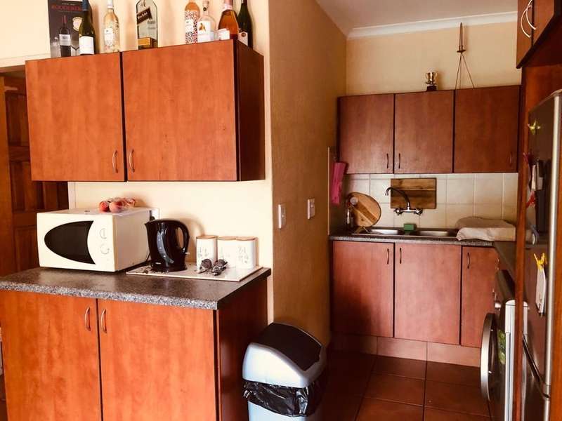 A sun-filled apartment consisting of an open plan living area and neat kitchen with washing machine connection, bedroom with built-in cupboards as well as a bathroom with shower, basin and toilet. A secure under roofed parking is available for your car. The complex is secure with automated gate and electric fencing.