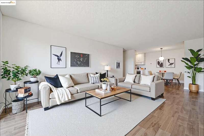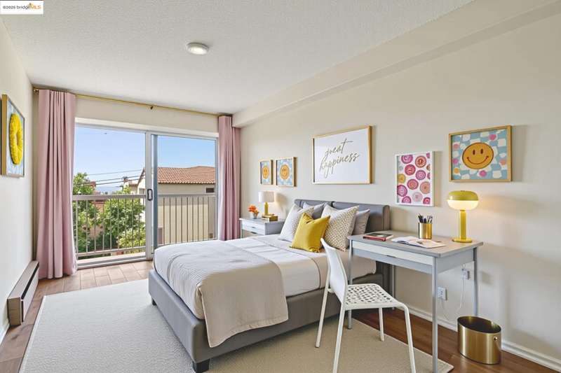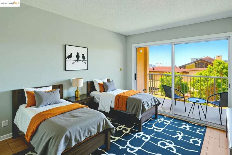 This Berkeley condo offers sparkling rooftop and Bay views with two large bedrooms in a prime location, just a scooter ride away from UC Berkeley's International House and steps from Memorial Stadium. It is an ideal home for students or investors. The unit features an open floor plan filled with natural light, a freshly painted interior, an updated kitchen with new countertops (2025), great storage, and an in-unit washer/dryer. A spacious balcony spans the living room and bedrooms, overlooking Berkeley and offering breezy Bay views. The building provides keyed entry lobby or elevator access from the gated garage, where you will find your deeded parking space. It is also minutes from Downtown Berkeley and BART. Whether you're looking for a bohemian, urban, or academic lifestyle, this Berkeley property offers a perfect fit. *Furnishings shown are computer-generated images using photos of the home created by an outside source. These images may not accurately depict the true scale of the space. Neither seller nor listing broker will investigate or verify the accuracy of the relative scale in these images.