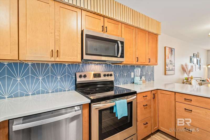 Motivated Seller: Bring All Offers. Seller is Offering a Buyer's Warranty. Located on the most desirable coastline Alabama has to offer this unit is TURNKEY and can be all yours! This 2 bedroom/2 bathroom unit boasts many upgrades to include new LVP flooring, updated furnishings, fixtures, quartz countertop, cabinetry, and stainless steel appliances. Relax and enjoy the outdoor area which has plenty of seating and views of the Gulf of Mexico. The complex also features many amenities such as a pool, tennis courts, onsite security, fitness room, charcoal grills, and easy beach access. Nearby hospitality venues and restaurants make for easy dining and fun-filled days and nights. The condo is sold fully furnished with exception of the door camera and all digital door locks. If looking for a rental property, this will book. Rental projection via RBI & unit sleeps six. The information is deemed reliable, but buyer to verify all information. Seller will offer a (non-HVAC) buyer's home warranty for first year. Buyer to verify all information during due diligence.