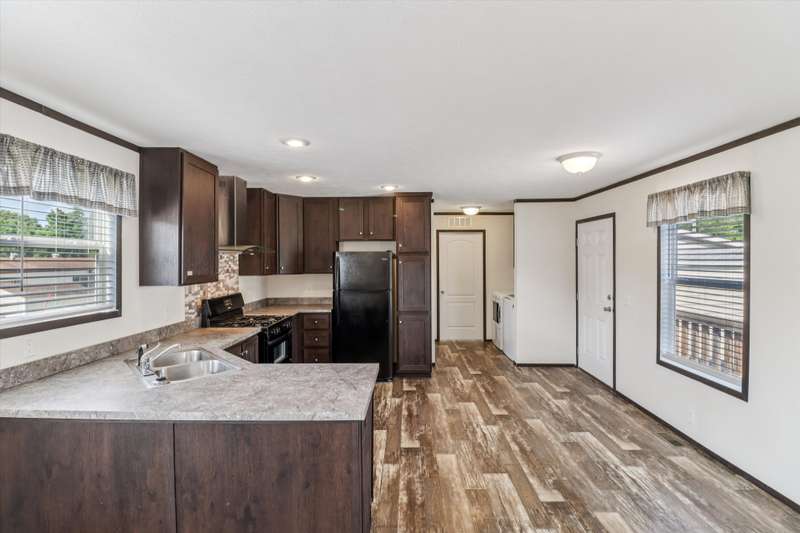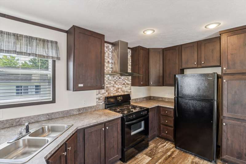 Beautiful Like New Mobile Home in quiet Stover Heights. 2020 Clayton 16 X 66. Maintenance Free and many years of comfortable living. Spacious open living room open to kitchen and eating area. All black appliances inc., Dark cabinets, tile backsplash & SS Hood above gas stove. Large primary bedroom with double closets and a nice bath with large walk-in shower. Family bedroom with double closets. Nice Full hall bath. All flooring is LVP. Laundry area inc. Washer/dryer and only 3yrs. All blinds