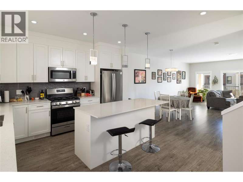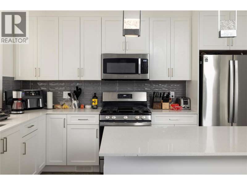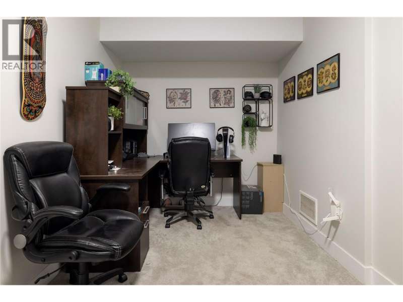 Welcome to this spacious and thoughtfully designed townhouse in sought-after Black Mountain, offering over 1,900 sq ft of comfortable living across multiple levels. The main floor features a bright open-concept kitchen, dining, and living area with a cozy gas fireplace and direct access to the balcony, creating a perfect space for relaxing or entertaining. The kitchen offers plenty of cabinetry, generous counter space, a large pantry, and a convenient powder room just off the main living area. Upstairs, three inviting bedrooms provide space for everyone. The primary suite includes a private ensuite and walk-in closet, while the secondary bedrooms share a full bath and nearby laundry for easy access. Large windows fill the rooms with natural light, and the thoughtful layout ensures a nice balance of privacy and connection. On the lower level, a private office makes working from home a breeze, and the double garage with inside entry adds convenience for everyday living. The welcoming foyer and extra storage spaces throughout the home add to its functionality. Strata allows 2 dogs or 2 cats or one of each! With both a completely fenced private patio and a balcony for outdoor enjoyment, this home blends comfort, space, and smart design in a quiet, well-kept community near Black Mountain Golf Club, parks, schools, and easy highway access. It’s the ideal place to settle in, create memories, and enjoy everything the Okanagan lifestyle has to offer. (id:58403)