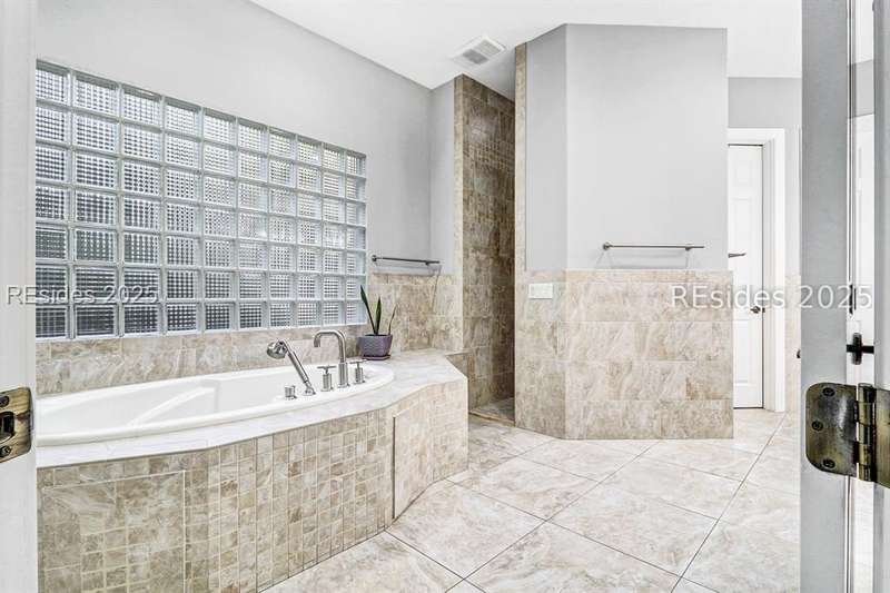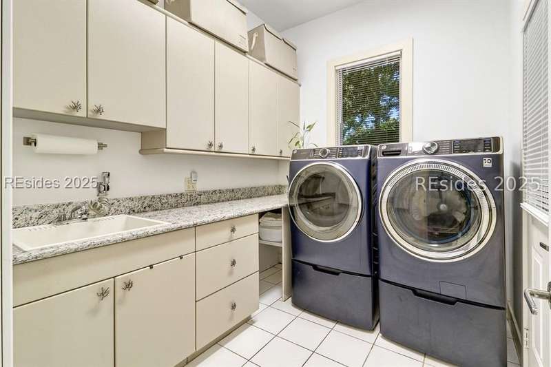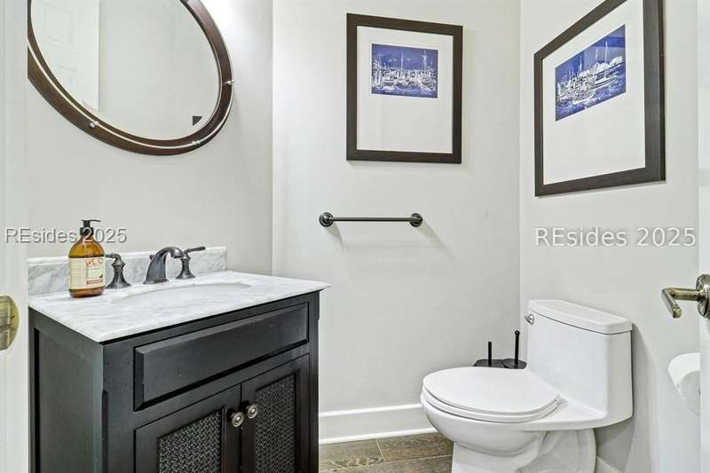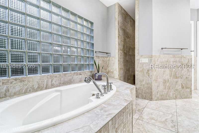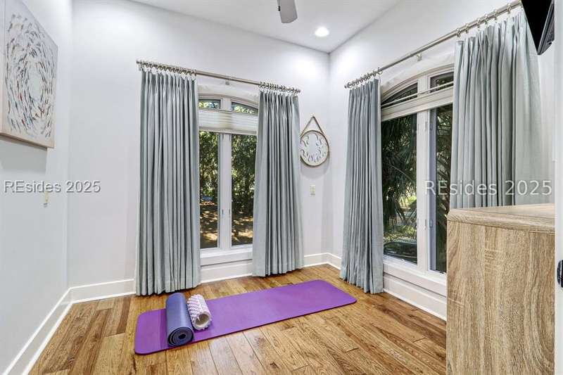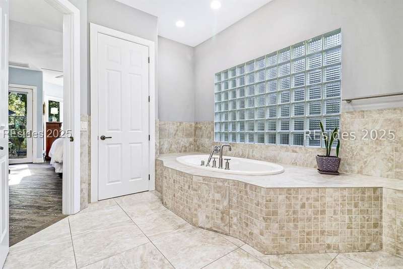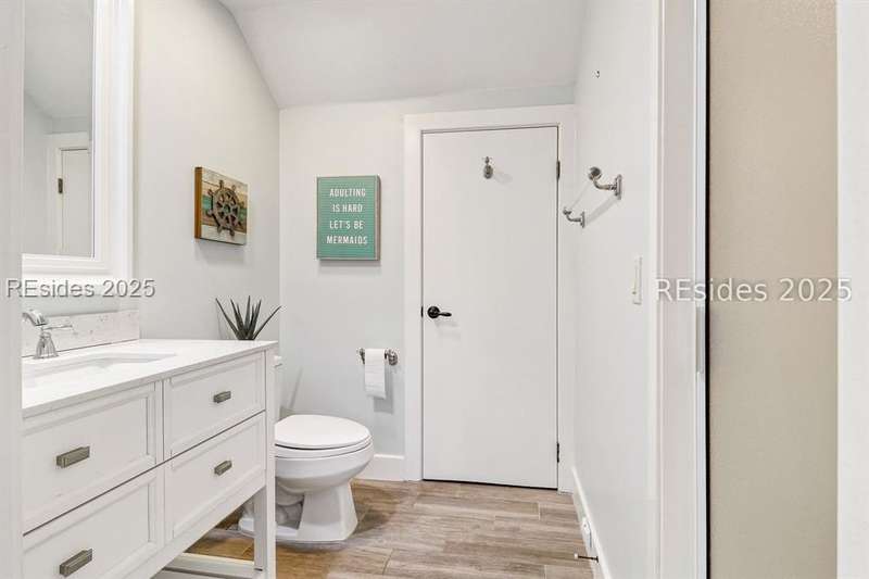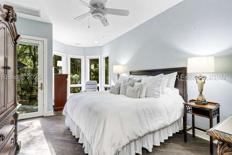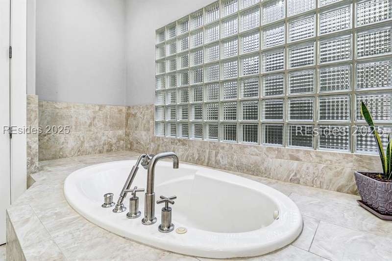 Only 300 yards from the sand, this Port Royal home ensures the Beach is part of your everyday life. The custom floor plan pairs coastal ease with modern design, set on an oversized (.86 acre) corner lot w a golf view. Inside, soaring ceilings and an open inviting layout create a light-filled gathering space with fireplace, dining, kitchen, beverage bar, and walk-in pantry. A welcoming front room with fireplace, primary suite, office, guest room & laundry complete the main level. Upstairs, a split design offers three more guest suites, including a bunk room retreat perfect for family & friends. Outdoors, enjoy lush gardens, open & covered patios designed by master gardeners. Living in Port Royal means access to private beach access, a beach house, lap pool, fire pits, leisure trails, pickleball, tennis, playground, community gardens, and 24-hour security in Hilton Heads only private oceanfront community with no short-term rentals. A warm & social setting.