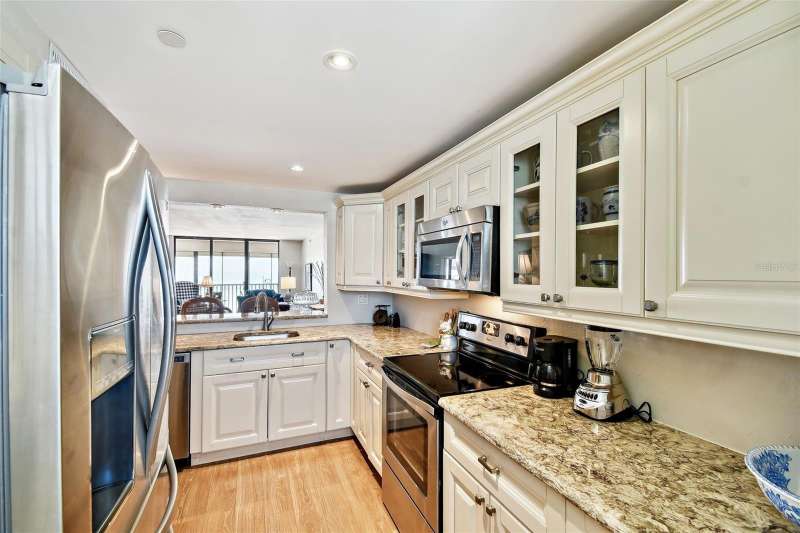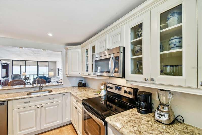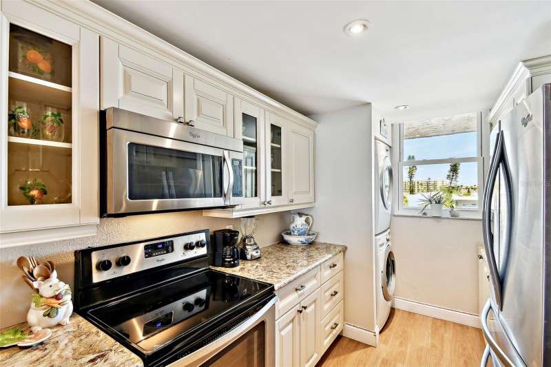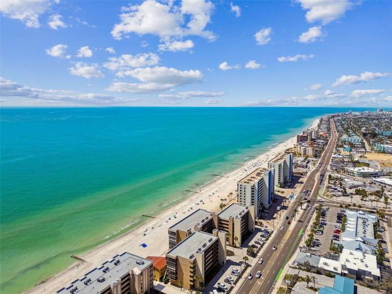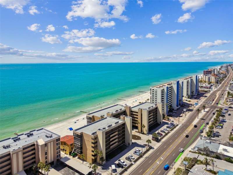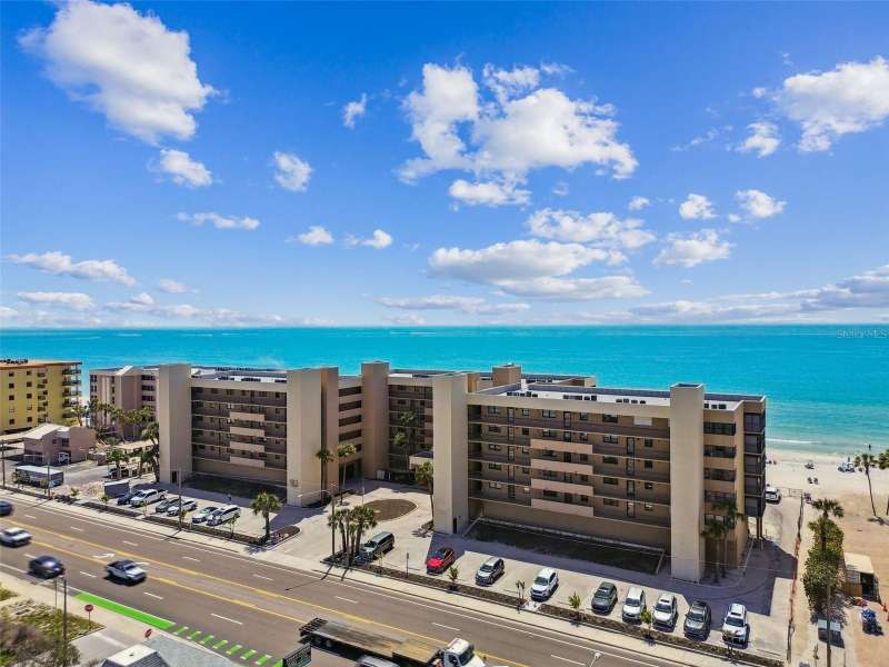 Seller is offering to pay monthly HOA dues through the end of the year with acceptable offer. Step into coastal elegance in this stunning beachfront condo, where breathtaking Gulf views and refined updates come together to create your personal slice of paradise. From the moment you enter, you’ll be drawn to the seamless open-concept layout, thoughtfully designed to showcase the sparkling water views and capture the essence of beachside living. The fully renovated kitchen is a beautiful blend of form and function, featuring solid wood cabinetry with soft-close doors and roll-out shelving, luxurious quartz countertops, a pantry, and sleek stainless steel appliances—ideal for everyday living and entertaining alike. Both spacious bedroom suites offer private ensuite bathrooms, creating the perfect setup for comfort, privacy, and guests. Notable upgrades include electric storm shutters, a new water heater, and updated finishes throughout. This well-maintained, concrete block building features a newer roof and resort-style amenities including a heated pool, spa, private beach access, and pet-friendly policies. The HOA covers cable, water, sewer, trash, building insurance, a deeded covered parking space, a secure private lobby entrance for peace of mind and more—offering low-maintenance luxury in an unbeatable location. Ideally located in the heart of Madeira Beach, you’re just steps from local restaurants, boutique shops, and beachside cafes, with John’s Pass Village just a short trolley ride away. Downtown St. Pete and Tampa International Airport are both within easy reach. Whether you’re seeking a full-time residence, a vacation retreat, or a smart investment—this is a rare opportunity to own your very own Gulf-front home in one of Florida’s most sought after coastal communities.