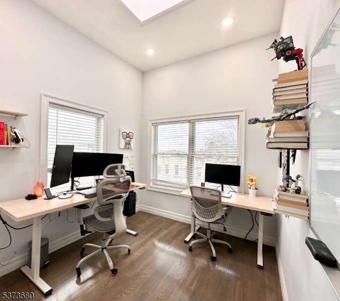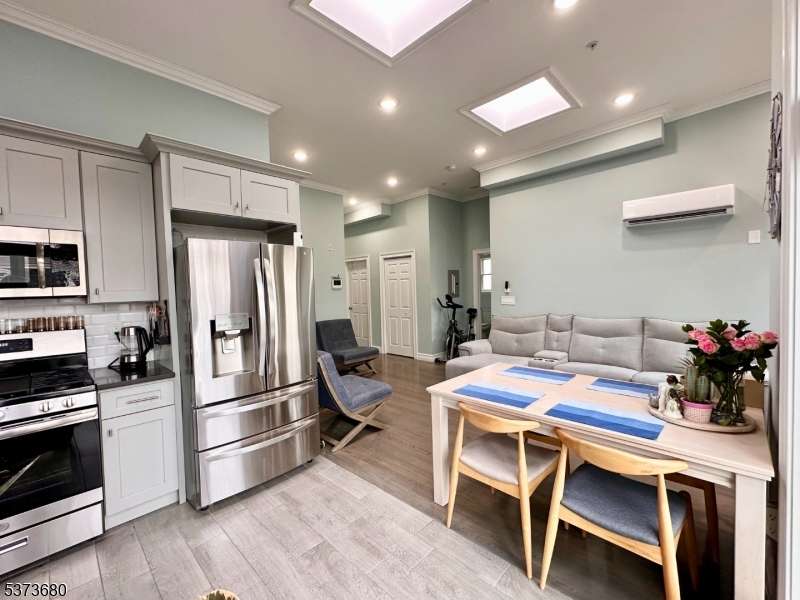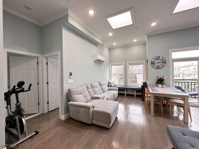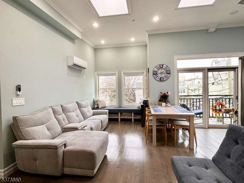 Stunning luxury condo for rent in the highly sought-after Sparrow Hill section of The Heights! This bright, airy 3-bedroom, 2-bath apartment offers approximately 1,134 sq ft of stylish living space. The modern kitchen features stainless steel appliances and quartz countertops, complemented by hardwood floors throughout. Enjoy a private balcony, in-unit washer and dryer, pantry, high ceilings, skylights, and oversized windows that fill the home with natural light. Each room includes efficient ductless split heating and cooling systems. The unit also offers dedicated parking spaces in the building, along with built-in shelves for extra storage. Conveniently located near Journal Square, with easy access to the PATH station, NYC bus service, Holland Tunnel, and NJ Turnpike, and just moments from local cafes, shops, and the vibrant Little India neighborhood.