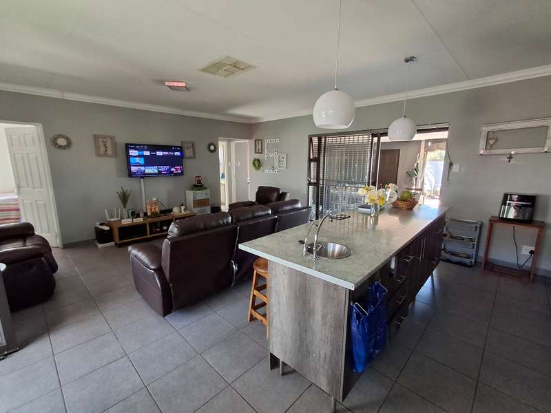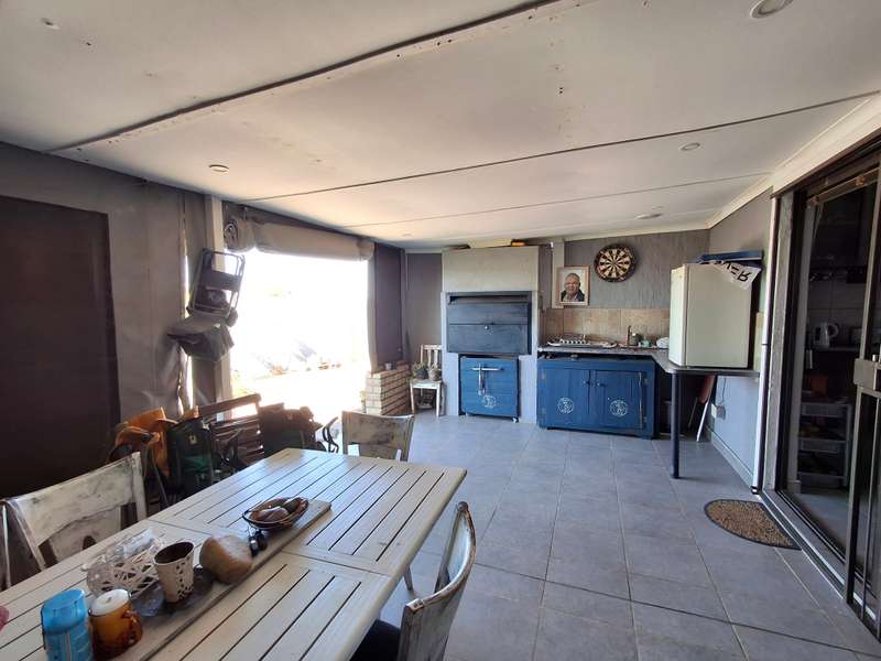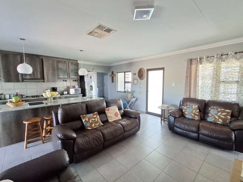 Situated in the peaceful and sought-after suburb of Camelot, this charming residence offers an exceptional combination of comfort, style, and serenity. The home features three spacious bedrooms and two well-appointed bathrooms, including a master en-suite. The open-plan lounge creates a welcoming atmosphere, flowing effortlessly into a contemporary kitchen equipped with ample cupboard space and high-end finishes. Adjacent to the kitchen, a separate scullery adds both practicality and convenience. Designed for year-round entertaining, the covered Braai-Patio is enclosed with durable canvas blinds, making it an ideal space for gatherings in any season. The double garages provide secure parking and additional storage space. Set in a quiet, secure neighborhood, this home is perfect for those seeking a relaxed lifestyle. With beautifully maintained surroundings and minimal traffic, residents can enjoy peaceful walks and a strong sense of community. This property is a perfect sanctuary for families or professionals looking to escape the city’s hustle while remaining within close proximity to essential amenities.