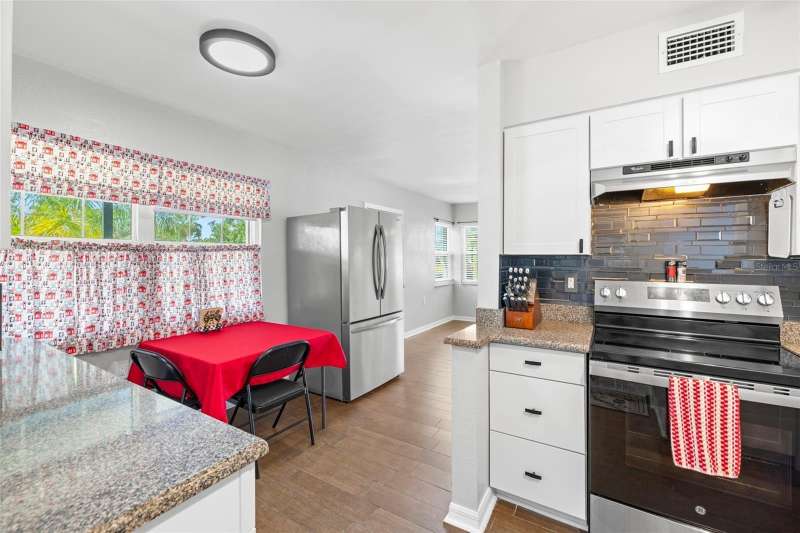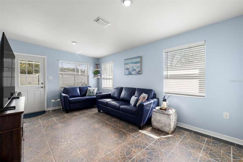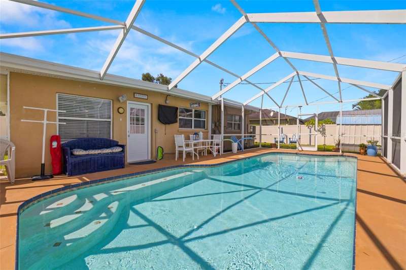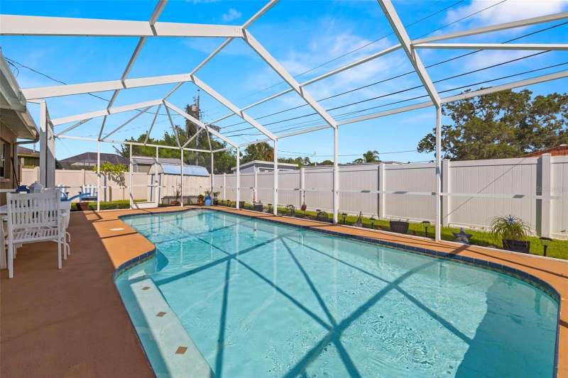 Welcome to this beautifully updated single-family pool home in the desirable Baywood Shores community, offering over 1,400 sq. ft. of thoughtfully designed living space. With a versatile 2-bedroom, 2-bath floor plan, this home combines modern updates with timeless charm, all just steps from the Dunedin Causeway and Pinellas Trail. Inside, you’ll find hard-surface flooring throughout (no carpet) and freshly painted interiors in serene tones. The kitchen shines with new 2025 stainless steel appliances, white shaker-style cabinets (refaced uppers with all-new lower cabinets), stone countertops, and a sleek grey glass tile backsplash. Extra counter space with shelving add both function and style. The flexible bonus space includes built-ins, making it ideal for an office or cozy sitting area. Both bedrooms feature new ceiling fans, while the secondary bedroom boasts new vinyl plank flooring. The bathrooms have been fully updated with new cabinetry, tilework, fixtures, and toilets-one with a tub/shower combo and one with a glass-enclosed shower. An inside laundry room with new 2025 washer, gas dryer, and storage cabinets adds everyday convenience. Step outside to your screened lanai, where all-new 2025 screens surround the sparkling pool and concrete deck. The private yard is fully enclosed with white vinyl fencing, creating the perfect retreat for relaxation or entertaining. This home comes with peace of mind thanks to extensive updates: new roof (2024), double-pane front windows (2023), hurricane-grade exterior doors (2025), new A/C (2025), upgraded main electrical panel and wiring (2025), and more. Location, Location, Location! Baywood Shores is one of Dunedin’s most coveted neighborhoods, known for its blend of charming cottages and custom waterfront estates. You’re just steps from the Dunedin Causeway, where you can enjoy kayaking, paddleboarding, or catching a sunset on the Gulf. The Pinellas Trail runs nearby, offering miles of scenic biking and walking paths. The Donald Ross designed Dunedin Golf Club sits across the street, while Honeymoon Island State Park and Caladesi Island—a top-ranked beach in the U.S.—are just minutes away. Downtown Dunedin is a quick golf cart ride or Jolly Trolley trip, where you’ll find boutique shops, award-winning breweries, waterfront dining, art festivals, and a vibrant year-round event calendar that makes Dunedin one of Florida’s most sought-after small towns. Don’t miss your chance to own this move-in ready Dunedin gem, where modern updates, a private pool, and an unbeatable location come together to create the perfect Florida lifestyle.