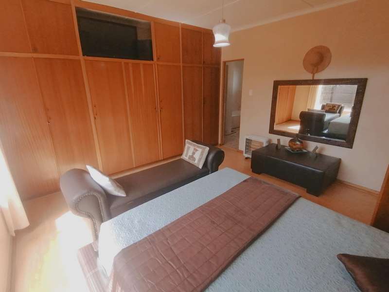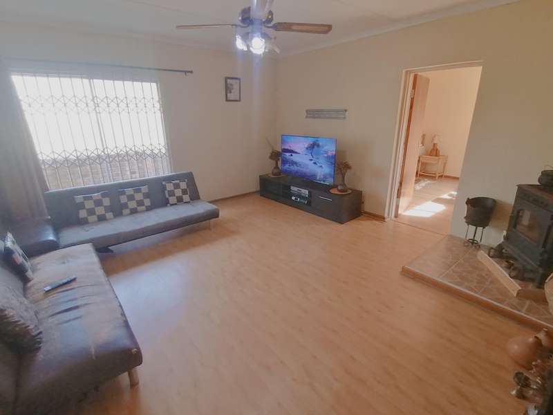 We are grateful to present this large 4 bedroom to you. The home consists of 4 neat bedrooms with laminate flooring and built in cupboards. The main bedroom has an en suite bathroom. The living areas consist of a large main lounge leading to the cental dining room, a second tv lounge with a fire place to make the Stutterheim winters warm and cozy as well as a sliding door leading to the nack undercover entertainment area and yard. There is a study room as well as the 4th bedroom leading off the tv lounge for hosting guests and family members. There is a separate office for those who study and work from home. The double garage has extra storage space as well as a separate laundry room leading outside. A separate outside toilet.
