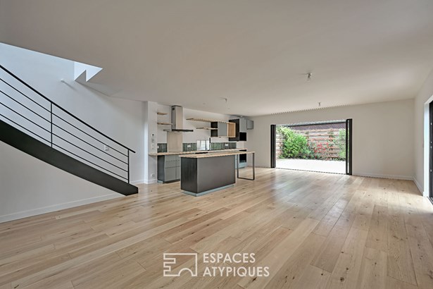 Nestled in a quiet environment, it benefits from a completely unobstructed view of a green setting and exceptional brightness thanks to its large openings. A house designed for a gentle urban life.
