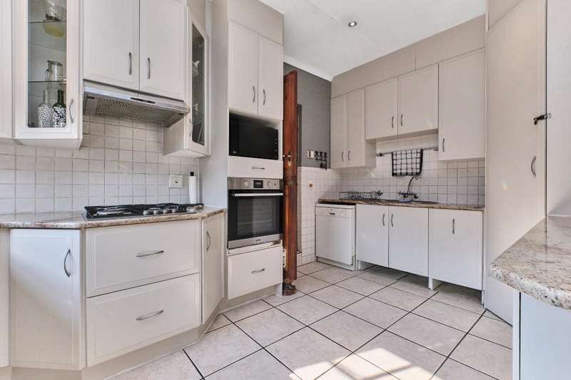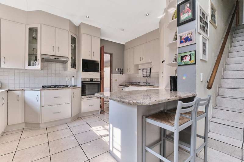Welcome to this beautifully designed home in the sought-after Villa Quattro 2 estate, where comfort meets sophistication. On entry, you are welcomed into a stylish kitchen, complete with a gas hob, pantry cupboard, and space for a dishwasher. A charming breakfast nook creates the perfect spot for casual family meals. The double garage has a built-in laundry area and leads directly into the kitchen for convenience. The open-plan dining room and lounge flow effortlessly from the kitchen, extending out onto a covered veranda. From here, you can enjoy views of the sparkling pool and manicured garden. Ideal for outdoor entertaining or simply relaxing in a tranquil setting. Off the lounge, are wo spacious bedrooms that share a full family bathroom, featuring a bath, shower, single vanity, and toilet. Upstairs, the luxurious main suite impresses with a generous walk-in wardrobe and a lavish en-suite bathroom offering a double vanity, oval bath, shower, and toilet. This elegant bedroom opens onto a large balcony with leafy treetop views, creating the ultimate retreat. A second upstairs bedroom, with its own en-suite shower room, provides a perfect private space as a family bedroom or study Ideally located, Villa Quattro 2 is within close proximity to top schools including Crawford Fourways and Fourways High, and enjoys convenient access to Cedar Square with Pick n Pay, Woolies, Clicks, restaurants, Virgin Active gym, and everyday essentials. Fourways Mall is just across the road, ensuring everything you need is right on your doorstep. This home combines elegance, practicality, and lifestyle a true gem in the heart of Cragavon, Fourways.
