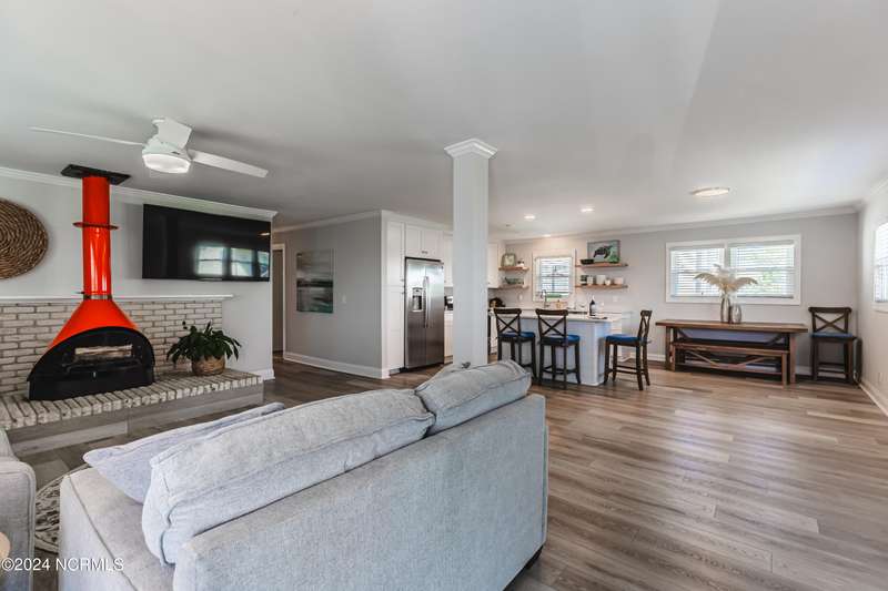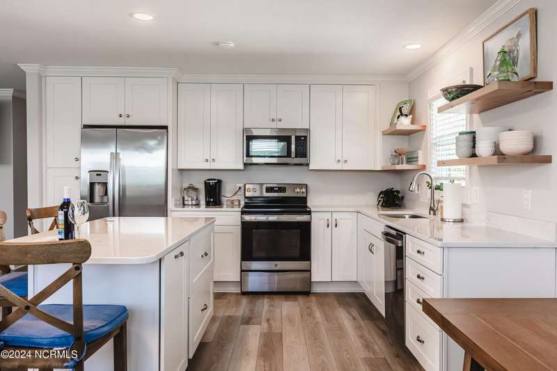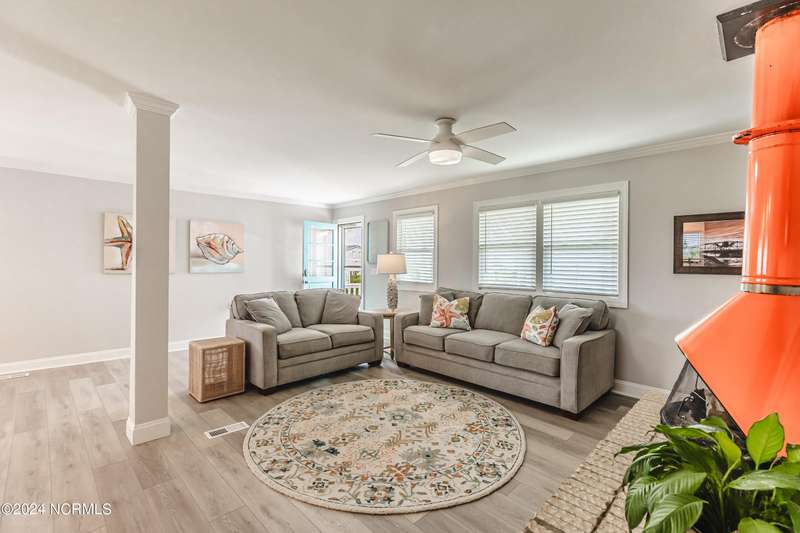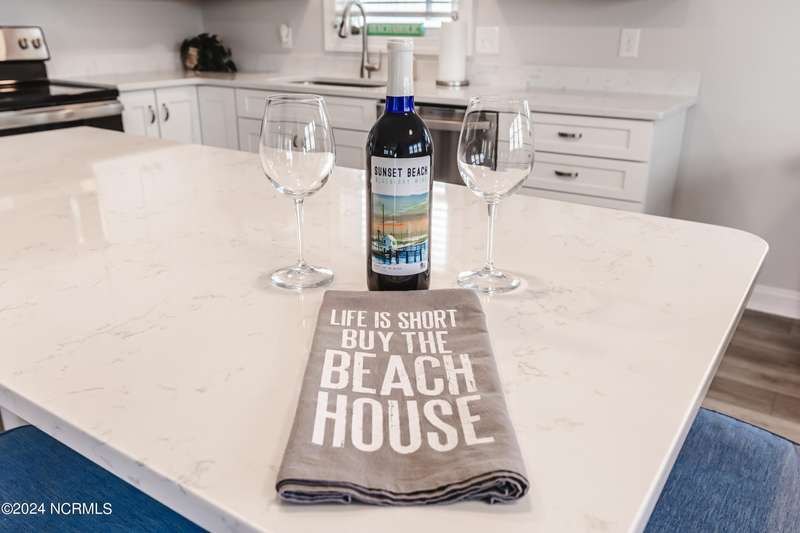 BEAUTIFUL 4 bedroom, 2 bath home located on the desirable west end of Sunset Beach Island. Stunning marsh views from the back covered deck. Enter into the open and inviting living area complete with wood burning fireplace. The kitchen has been updated with white wood cabinets, quartz counters and island with casual seating and a dining area for additional seating. New fortified roof 8-2025. New LVP flooring and crown molding throughout. The primary bedroom has sliders that open to the deck. Enjoy the serenity with your morning coffee or evening beverage of choice. There is a large storage area on the ground floor for the washer/dryer plus all of your beach toys. Sunset Beach Island is close to many restaurants, golf, novelty shops and mini golf. On the island you will find ice cream, novelty shops, and the sunset Pier where you can fish or just grab a snack. Of course, you will need to search for sea shells, sit in the sand and enjoy watching the sandpipers running in and out of the breakers. This home is ready for you to move in to or rent out for an investment property.