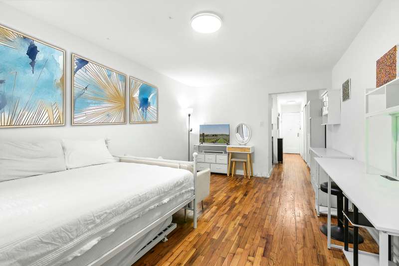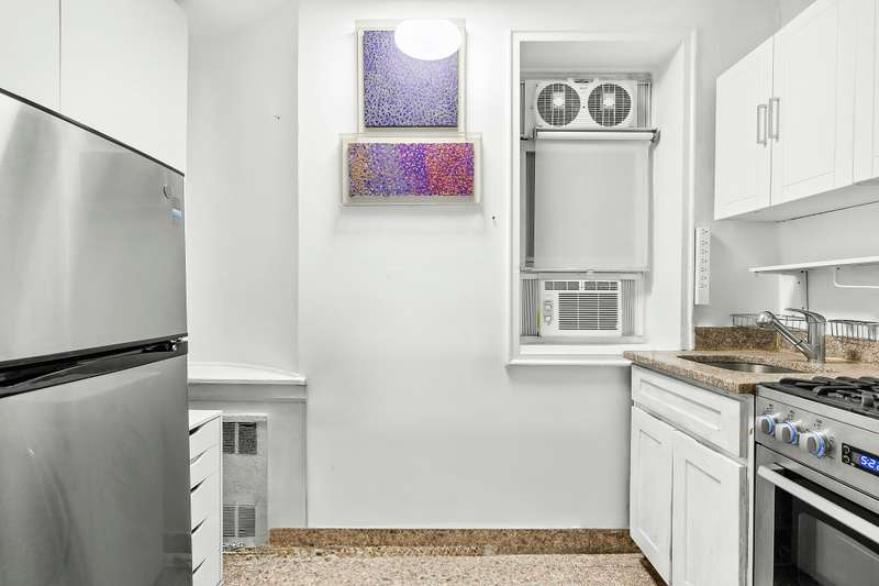 As you enter this versatile home, a gracious and long foyer featuring two large closets for all of your storage needs will welcome you. The bathroom has been tastefully updated with a new vanity and lights, and the windowed kitchen is well appointed with stainless steel appliances and a plethora of custom cabinet storage. The Studio, featuring two large south facing windows, is spacious enough to seamlessly create a natural division of living, sleeping and dining/work from home areas. ;
