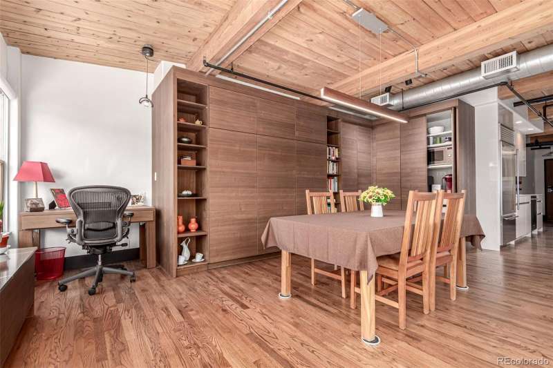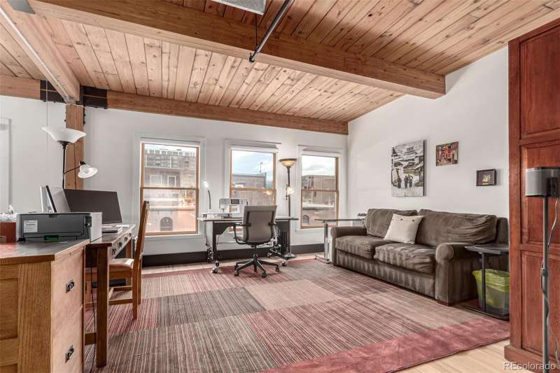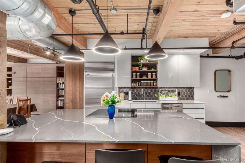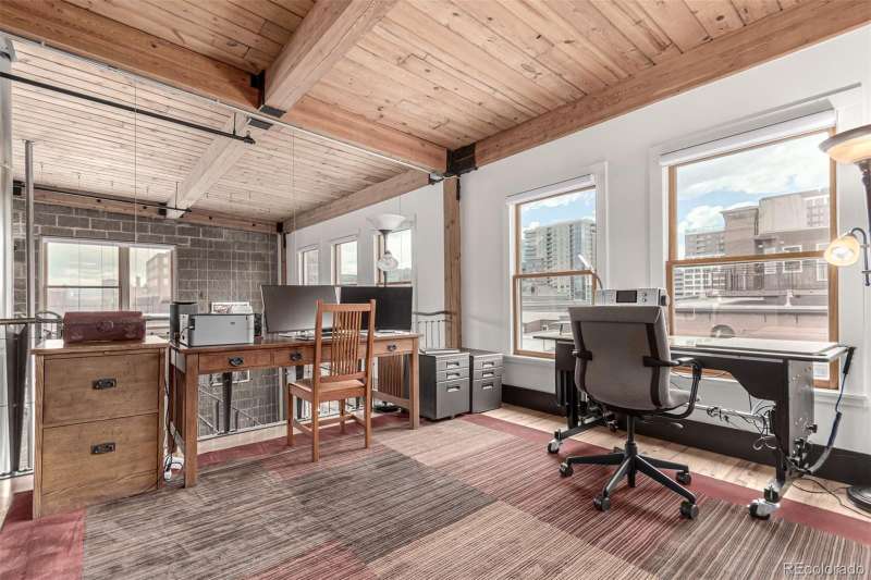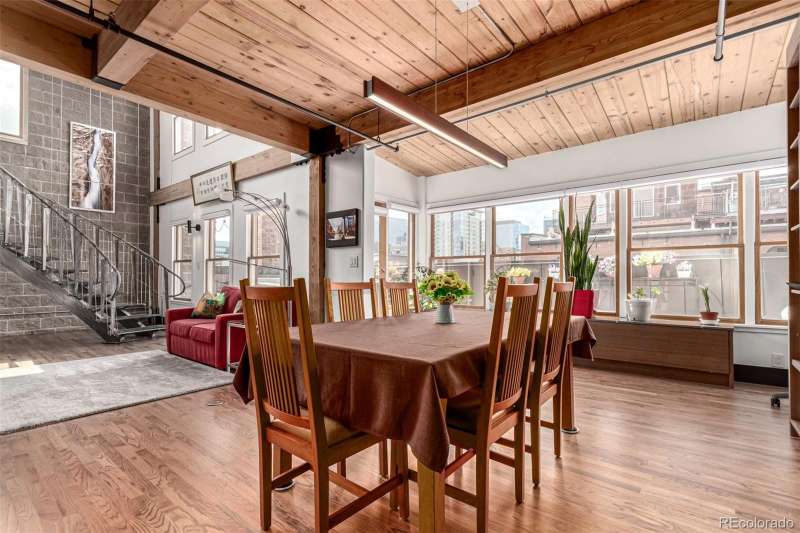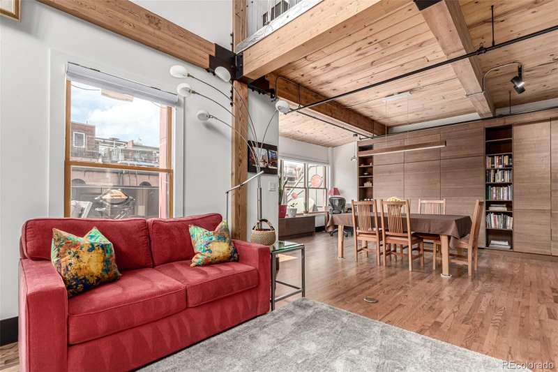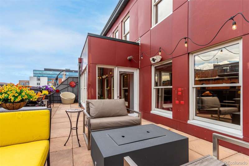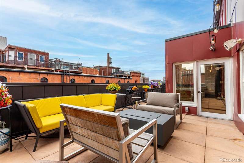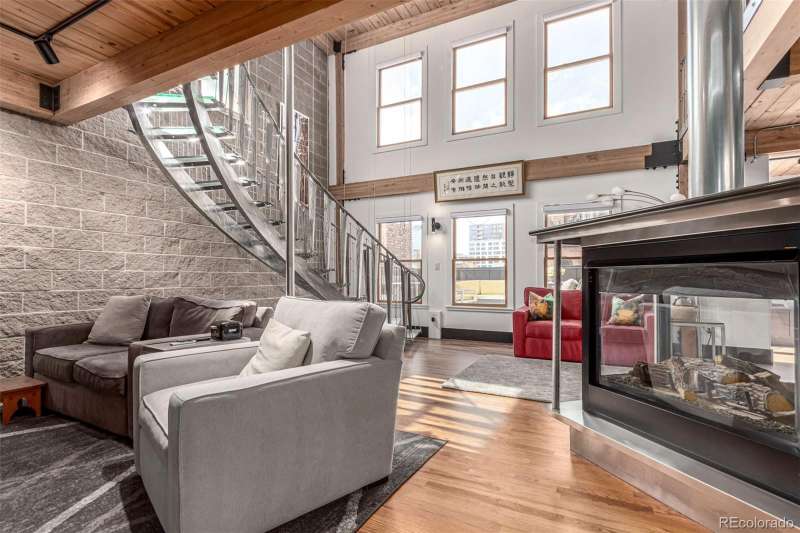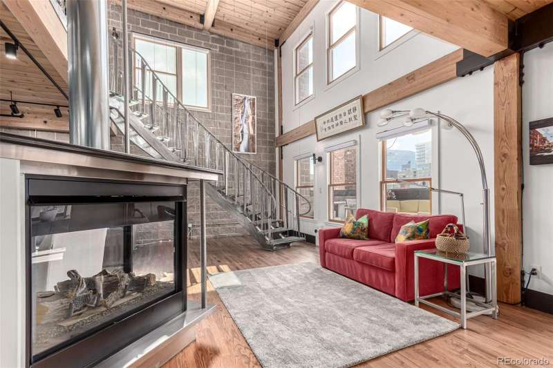 Experience urban living at its finest in this stunning, historic brick and timber penthouse loft in the heart of LoDo. This completely updated two-story residence blends vintage charm with modern luxury, featuring a dramatic two-story living area with a striking three-sided fireplace and expansive windows that flood the space with natural light. The sleek chefs kitchen boasts a large island bar with a waterfall countertop, glass tile backsplash, pendant lighting, and top-of-the-line stainless steel appliances, including a Sub-Zero refrigerator. Step outside to your private, large, terrace with views of Union Stationperfect for entertaining or relaxing. The main level also includes a stylish guest bath. Upstairs, the spacious primary suite offers a serene retreat with a five-piece bath, walk-in closet, and a large office area. Additional conveniences include an upper-level laundry, two dedicated parking spaces with an EV charger, and a private storage unit. The building has completed several capital improvements in the past several years including replacement of the 5th floor decks in 2017, roof replaced in 2020, and the hallways painted and re-carpeted in 2023! Dont miss this rare opportunity to own a one-of-a-kind historic loft in one of Denvers most iconic neighborhoods.