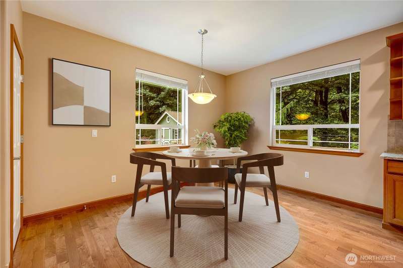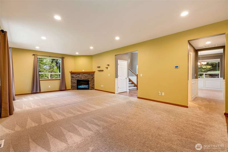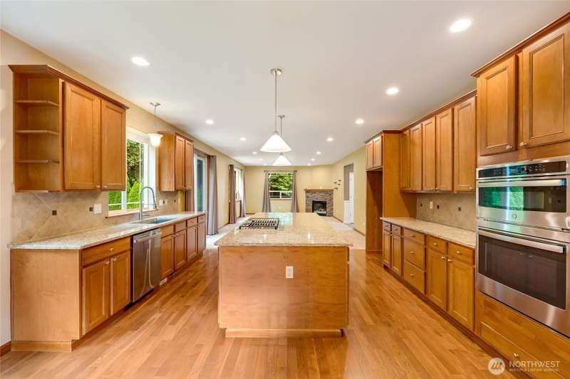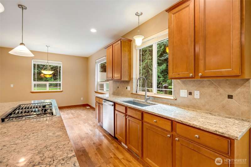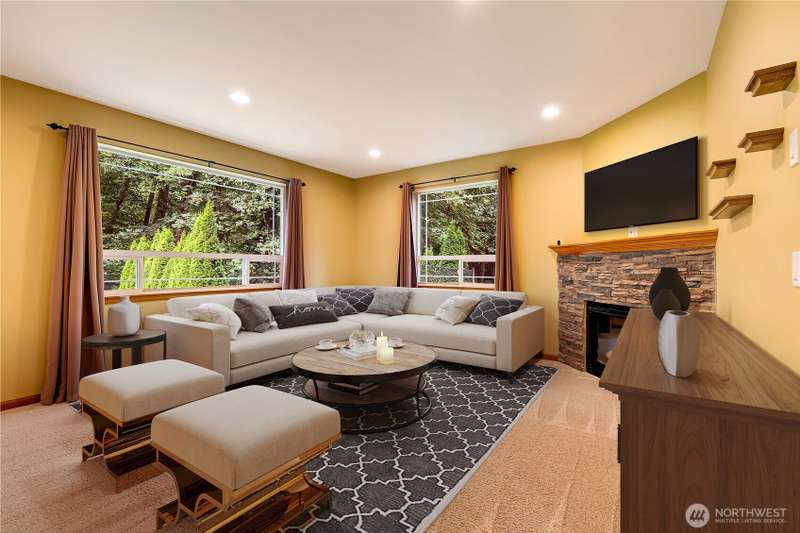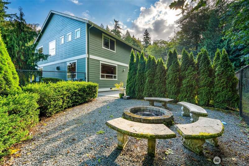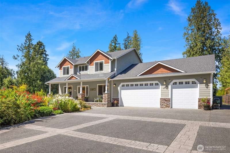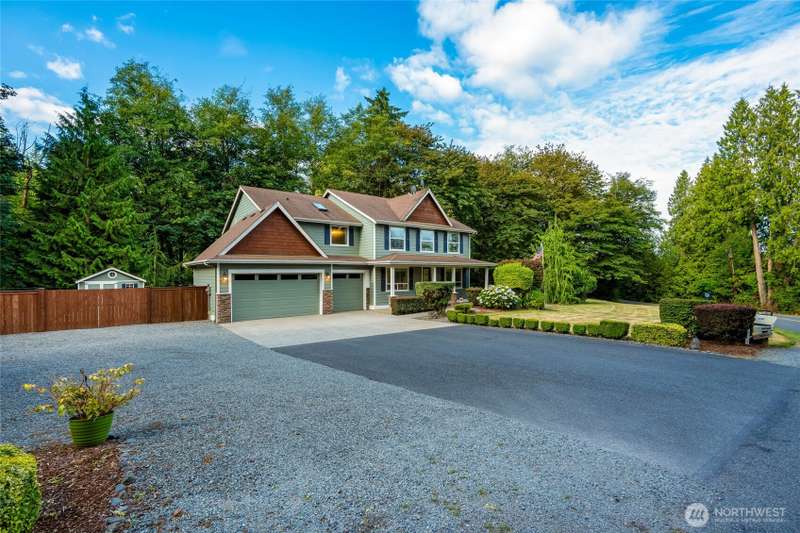 Beautifully maintained 3 bed, 2.5 bath Stanwood home with 2,748sf of interior living space! Features include: soaring ceilings upon entry, formal areas leading to casual spaces for day to day living, newer carpet (2022), hardwood floors, inviting kitchen with newer quartz counters, built-in oven/microwave, gas range, and large center island - great for entertaining! Adjoining slider door leads to private patio area with greenbelt views, fire pit, and fully fenced yard. Don't miss the upstairs bonus room, restful master suite, 3 car garage, newer high-efficiency furnace/heat pump (2021) & hot water heater (2021). Includes outbuilding, 3 propane tanks, private well/septic and RV parking. Minutes from I-5—this home has it all! Move in ready!