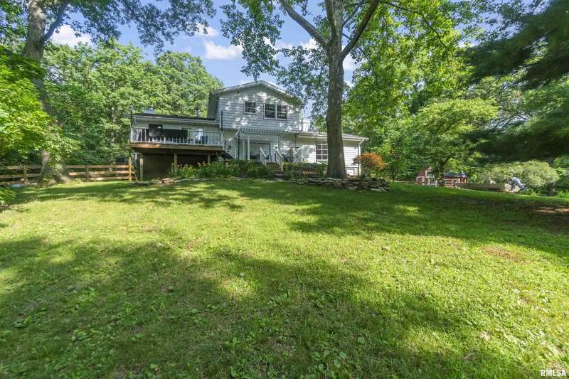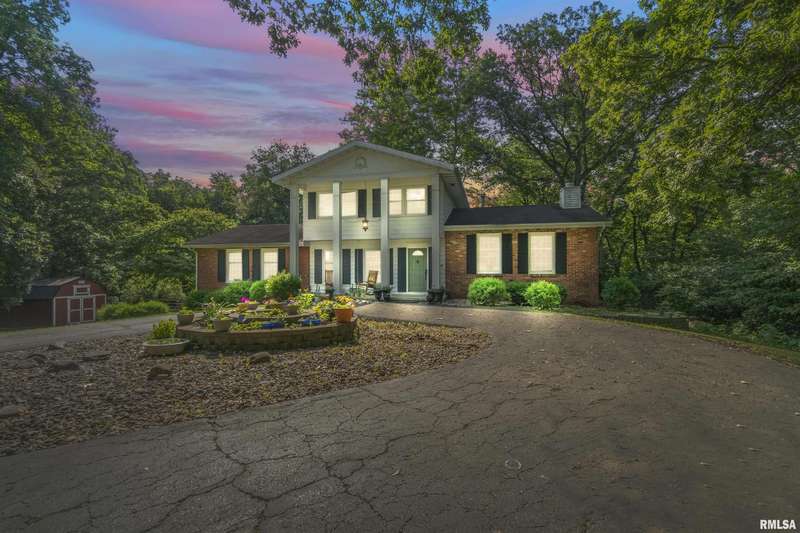 Nestled at the end of a quiet cul-de-sac, this stately home is set on a breathtaking 2.8-acre wooded lot, offering peace, privacy, and a truly serene setting. Surrounded by nature and bathed in natural sunlight, you’ll love the calm of being on the outskirts of town while still close to all the essentials. Step onto the welcoming front porch and into a warm, inviting space featuring 3 bedrooms, 2.5 bathrooms, and a convenient side-load 2-car garage. The spacious primary suite includes a full private bathroom, creating the perfect retreat. The backyard feels like it’s straight out of a storybook—lush, private, and beautifully wooded, with a deck that's perfect for relaxing or entertaining. There’s also an outbuilding and shed for all your storage or hobby needs. Whether you're looking for tranquility or space to roam, this home has it all.