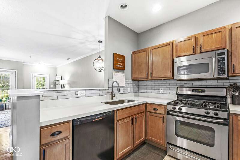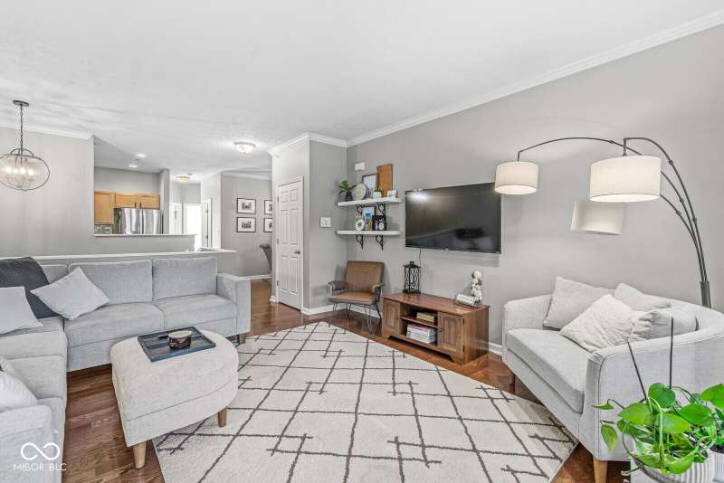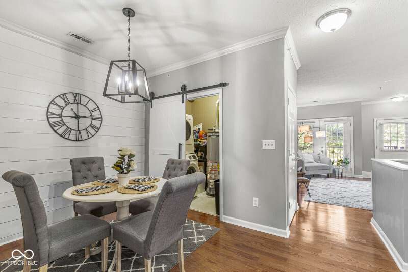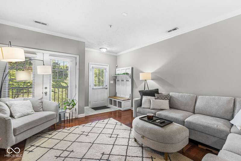 Looking for low-maintenance living in the heart of Broad Ripple? Your search ends here! Located in The Reserve, this beautifully maintained two-bedroom, one-bath condo features hardwood floors through the main level, updated light fixtures, and elegant crown molding in the living/dining area. The open floor plan is perfect for entertaining, and the main level laundry adds convenience to your daily routine. The french doors provide natural light and open to views of the serene pond. You'll also appreciate the lower-level area, ideal for storage or transforming into a workout room. Enjoy a one minute walk to the Monon Trail from the walking path, leading you to local shops, restaurants, art, and nature. And don't forget about the community pool! Relax with a fresh cup of coffee on the balcony before taking a stroll to explore all that Broad Ripple has to offer!
