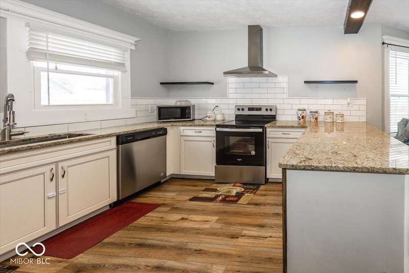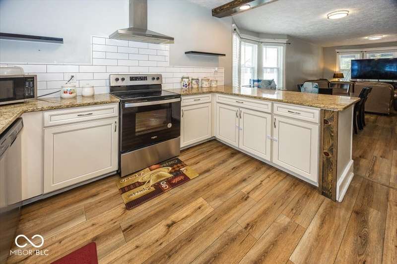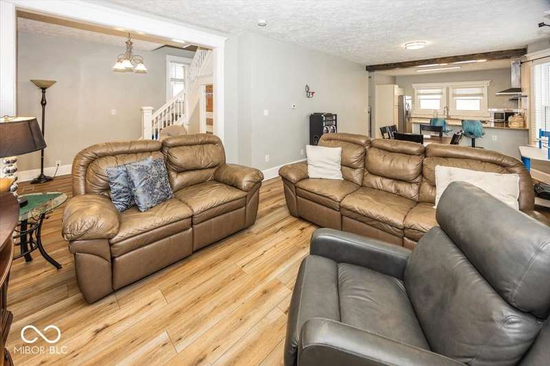 You must see this beautifully updated home on a larger corner lot, enclosed by a 6 ft vinyl privacy fence at the rear and a charming vinyl picket fence in front. The exterior features white Hardie plank siding and a spacious covered front porch. Inside, the open floor plan seamlessly connects the main living area to the dining space and an updated kitchen, complete with granite countertops, stainless steel appliances, and luxury vinyl plank flooring.This three-bedroom home includes a main-level bedroom, an upper-level primary suite with a full bath featuring a subway tile shower and a walk-in closet, along with an additional bedroom and full bath. Recent upgrades such as newer windows, roof, gutters, and newer HVAC system provide peace of mind. This home merges original charm with modern improvements across more than 2,200 square feet, offering ample parking, practicality, and an unfinished lower level with plenty of space for storage.