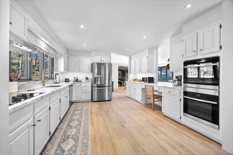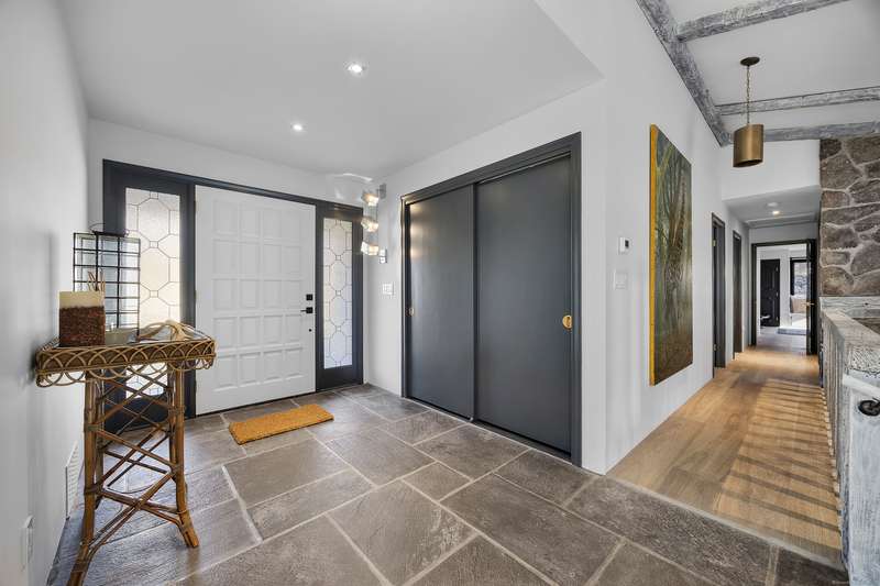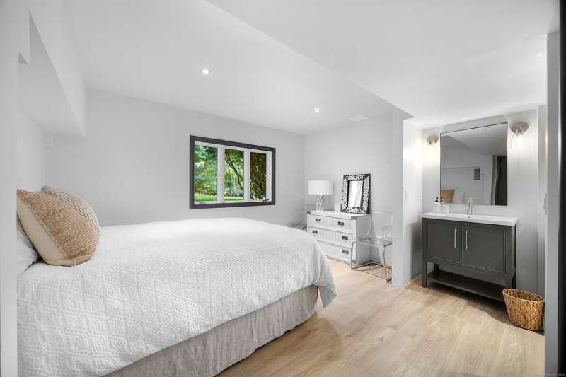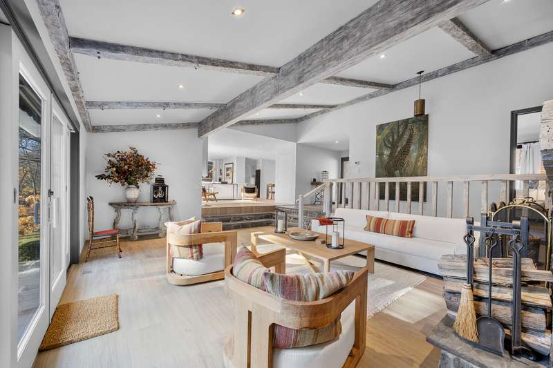 Situated on 2 manicured acres in Southport and surrounded by multi-million-dollar estates, this gated, European-inspired country home blends timeless charm with modern elegance. A white-pebble drive, stone walls, and sweeping lawns with mature trees create a private estate feel. Inside, the home balances warmth with sophistication. Offering 3 bedrooms on the main level and a 4th bedroom option in the lower level with full bath ensuite. Hand-hewn beams, slate entry, and a fieldstone fireplace pair seamlessly with crisp white walls, bold black accents, and striking designer lighting. The open yet defined layout features multiple entertaining areas, a sleek eat-in kitchen, and beautifully renovated baths. More than a home, this is an experience-an extraordinary Southport estate where modern luxury, historic charm, and a setting of rare beauty come together.
