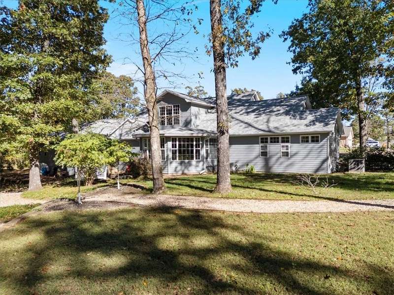 Welcome to your own slice of estate living in charming Bella Vista. This idyllic 3-bedroom, 2.5-bath home sits on a double lot, offering space, privacy, and timeless curb appeal. The classic front porch stretches across the home's fa���§ade, setting a serene & welcoming tone. Inside, a completely remodeled kitchen combines modern design with everyday functionality, perfect for gatherings with family & friends. A peaceful sunroom overlooks the expansive backyard, creating the ideal spot to relax & enjoy the view of the gorgeous, flat lot with plenty of room for a future pool! Enjoy the convenience of being on sewer while surrounded by trees, trails, & tranquility. A dedicated man-cave & workshop provide extra space for hobbies or quiet retreat. Located just moments from Dogwood Golf Course & extensive biking trail network, this property blends estate-style comfort with Bella Vista's signature lifestyle of golf, nature, & community. Private, peaceful, & perfectly positioned... this is the best of Bella Vista living.