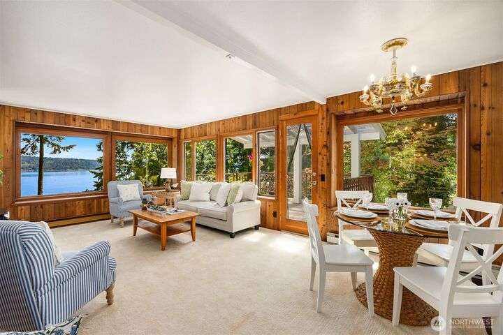 Once-in-a-lifetime opportunity to own 425' of high bank waterfront with sweeping views of Mt.Rainier, Vashon Island & Colvos Passage. This idyllic 1930's shingled cottage is filled with vintage charm, artistic touches & sits on 2.01 acres. Covered deck, lower patio & large deck overlook striking mature trees & lush gardens, creating an inviting space for BBQ's & entertaining. Beach access includes a platform to enjoy the exquisite nature & quiet. Space for kayaks, & beach toys at the beach. Just minutes to Southworth Ferry, Harper fishing pier & estuary. An ideal private retreat, weekend getaway or forever home. Don't miss this picture-perfect escape, a rare blend of privacy, timeless character & unforgettable views. Includes 4 tax parcels.